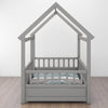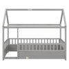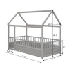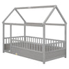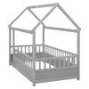 Twin Size Floor Wooden Bed with House Roof Frame, Fence Guardrails,Grey W1858123985-djyc