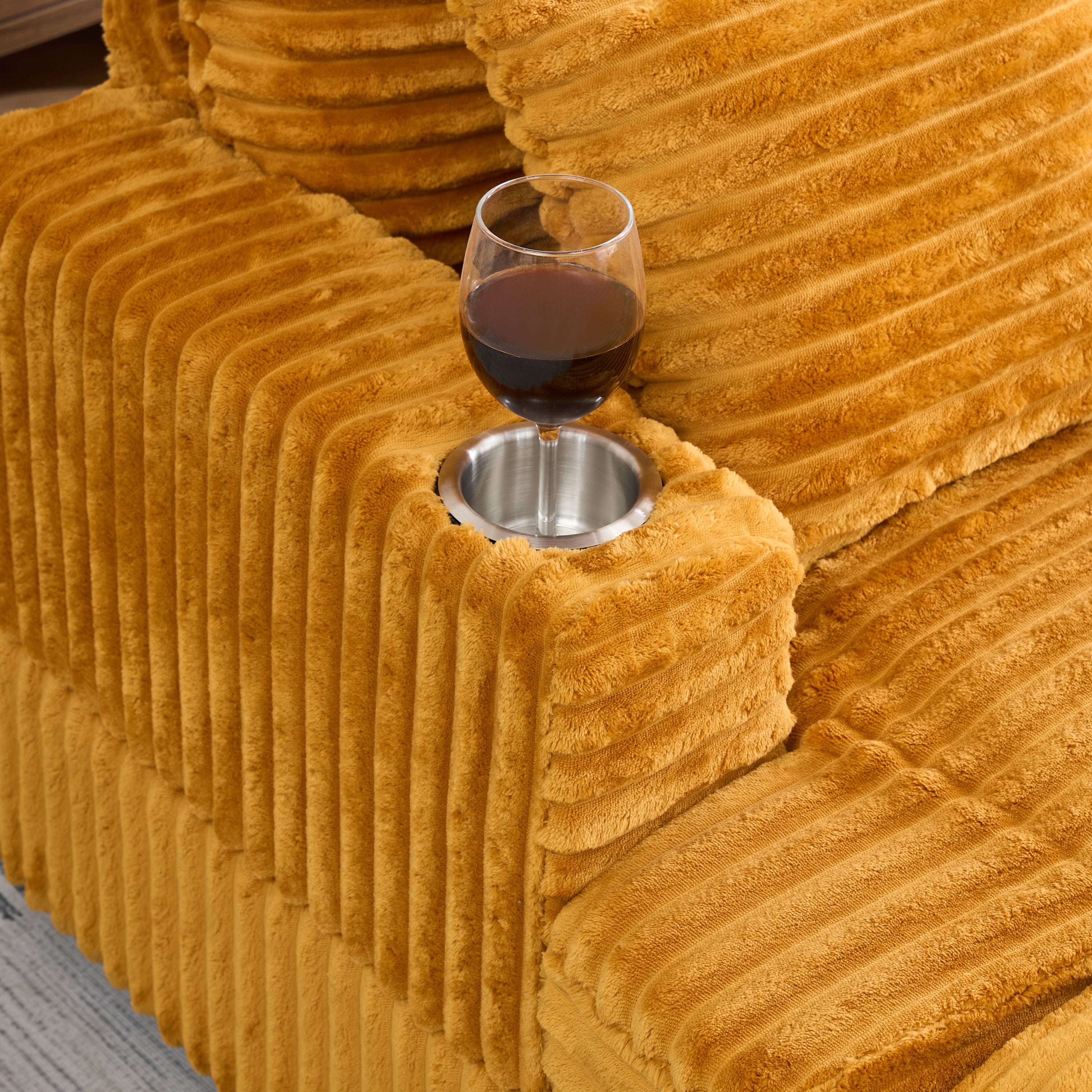 - High back design, 2 throw pillows, skin-friendly soft corduroy fabric, square armrest, water cup bracket, suitable for office and rest
