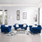 3 Piece Living Room Sofa Set, including 3-Seater Sofa, Loveseat and Sofa Chair, with Button and Copper Nail on Arms and Back, Five White Villose Pillow, Blue. W487S00051-djyc