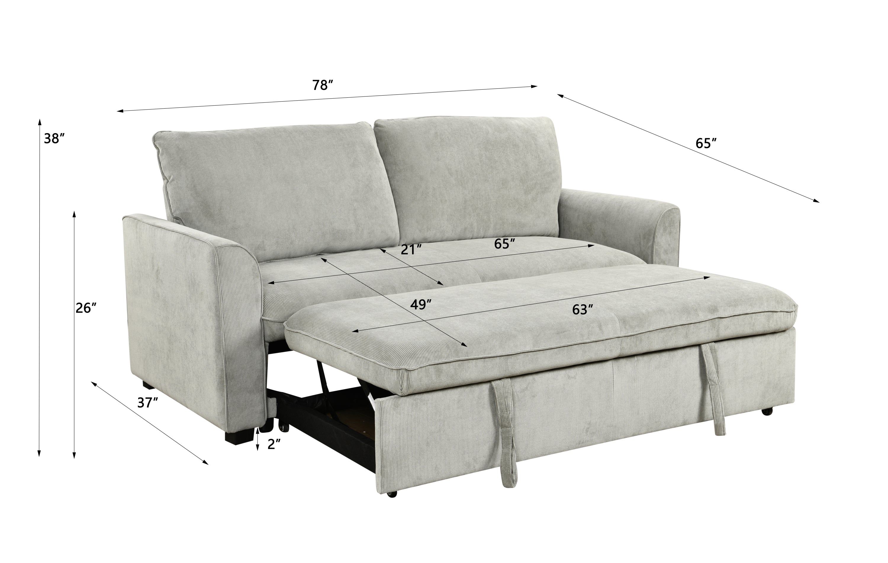- 【CONVERTIBLE PULL-OUT SOFA BED】 This sofa is equipped with a pull-out bed, which can be pulled out with 2 auxiliary hand straps to easily and quickly convert the loveseat into a chaise longue or a sleeping bed. Not only can it meet your needs for watching TV, playing games, or taking a break, but it can also provide a place to stay for overnight friends. It is very practical for a limited small space.