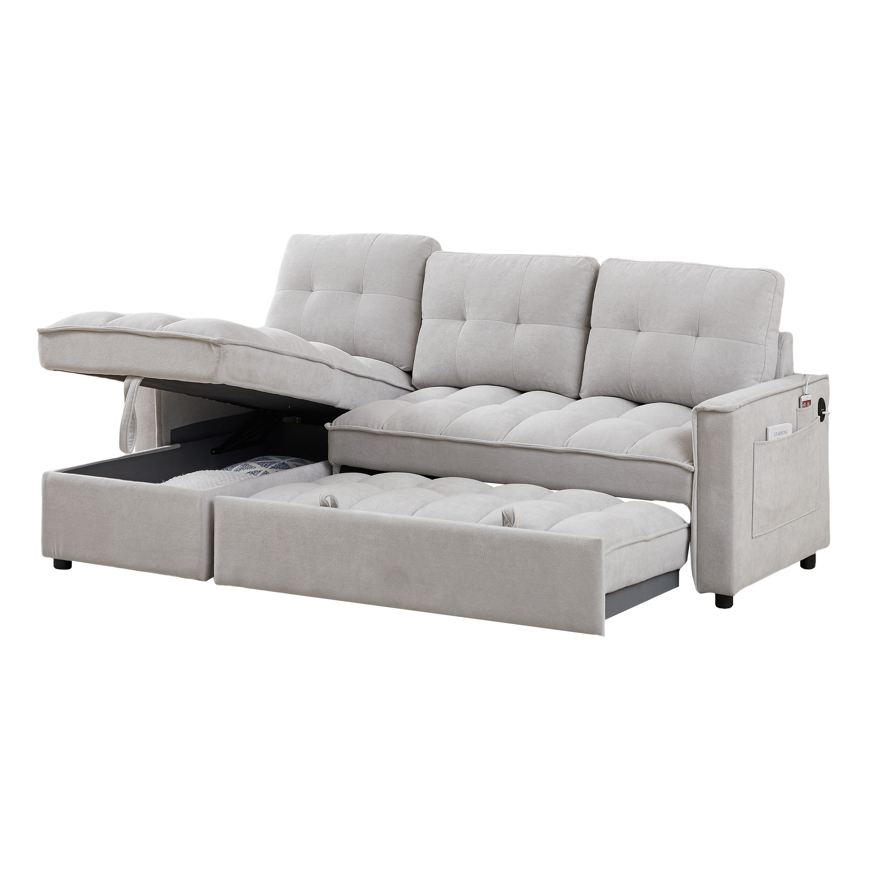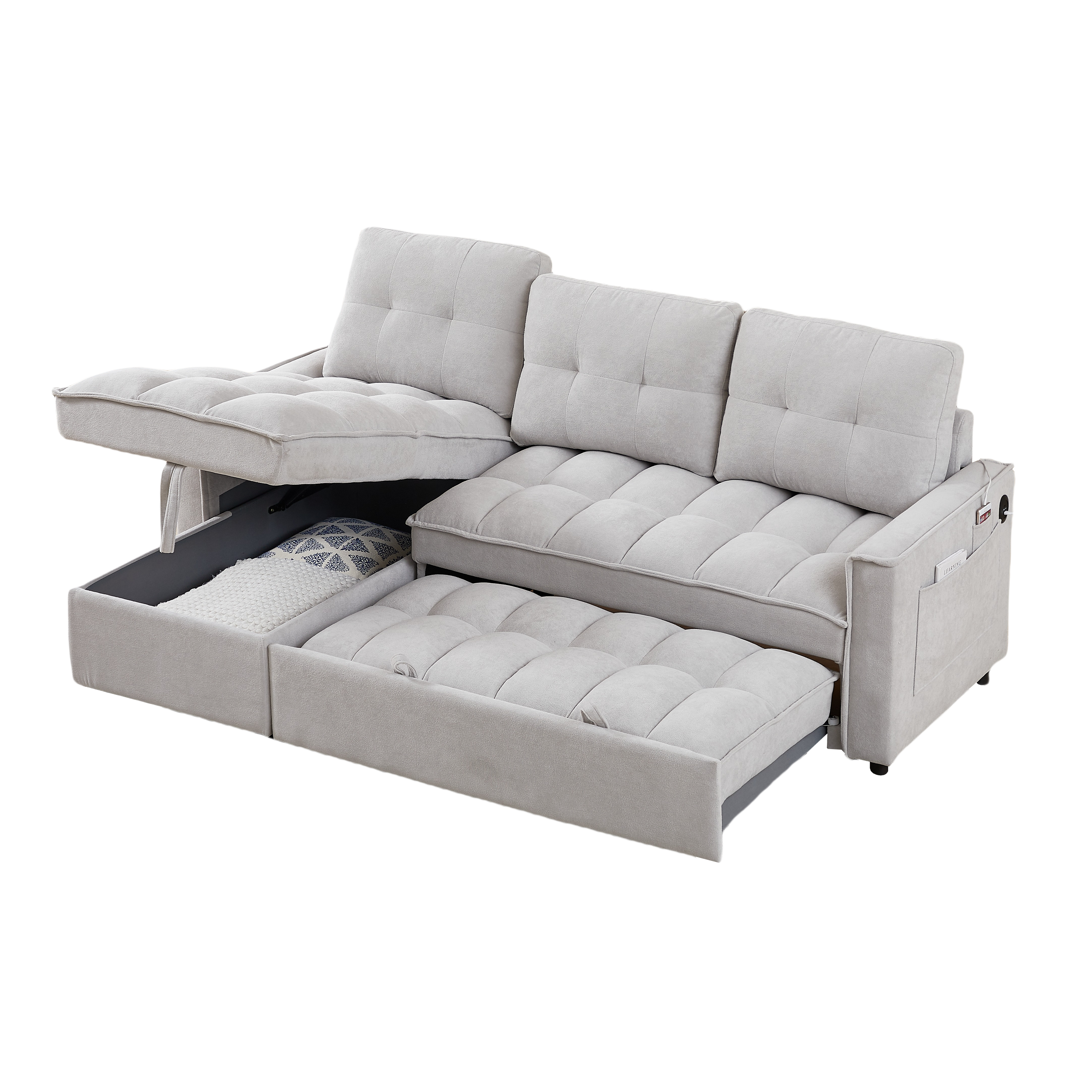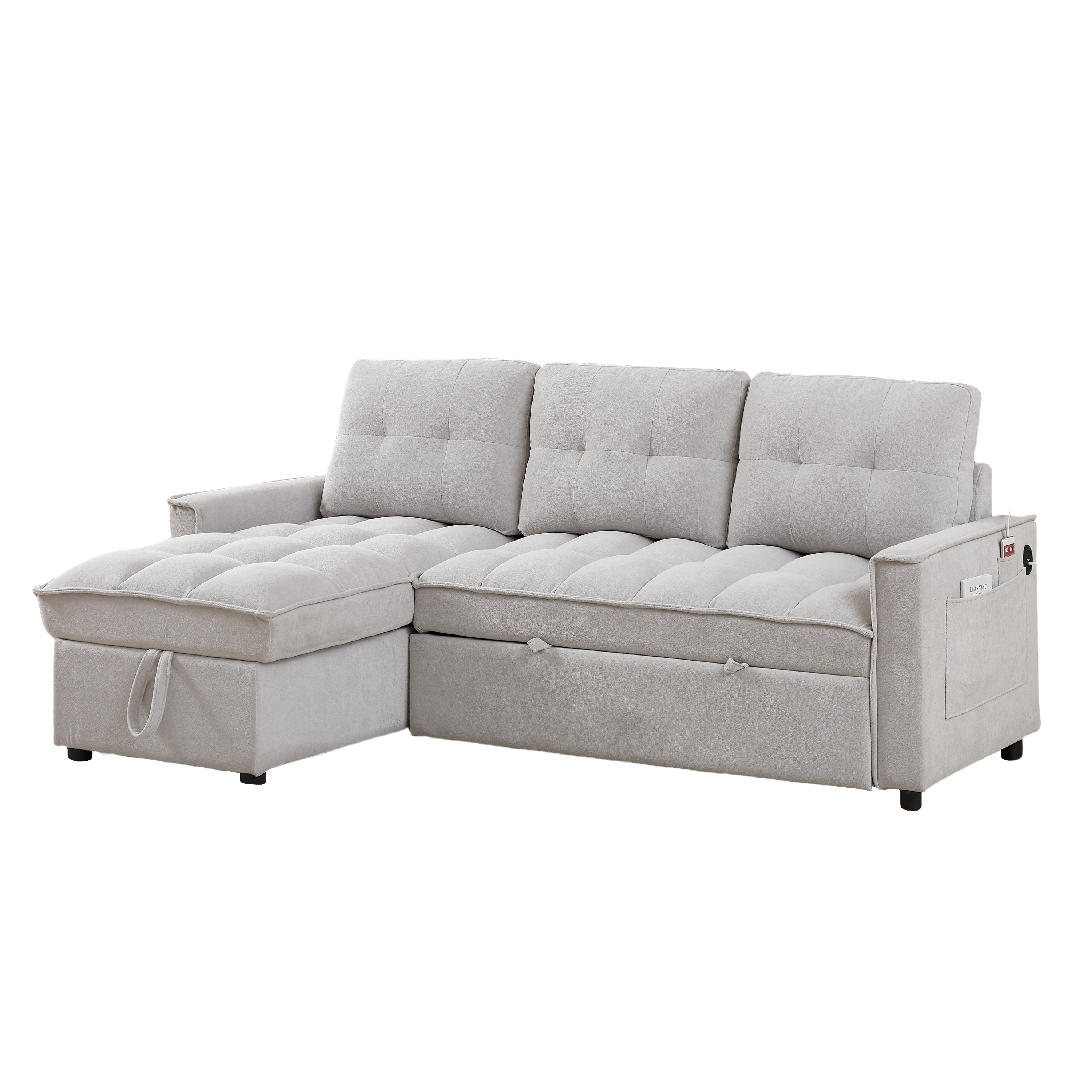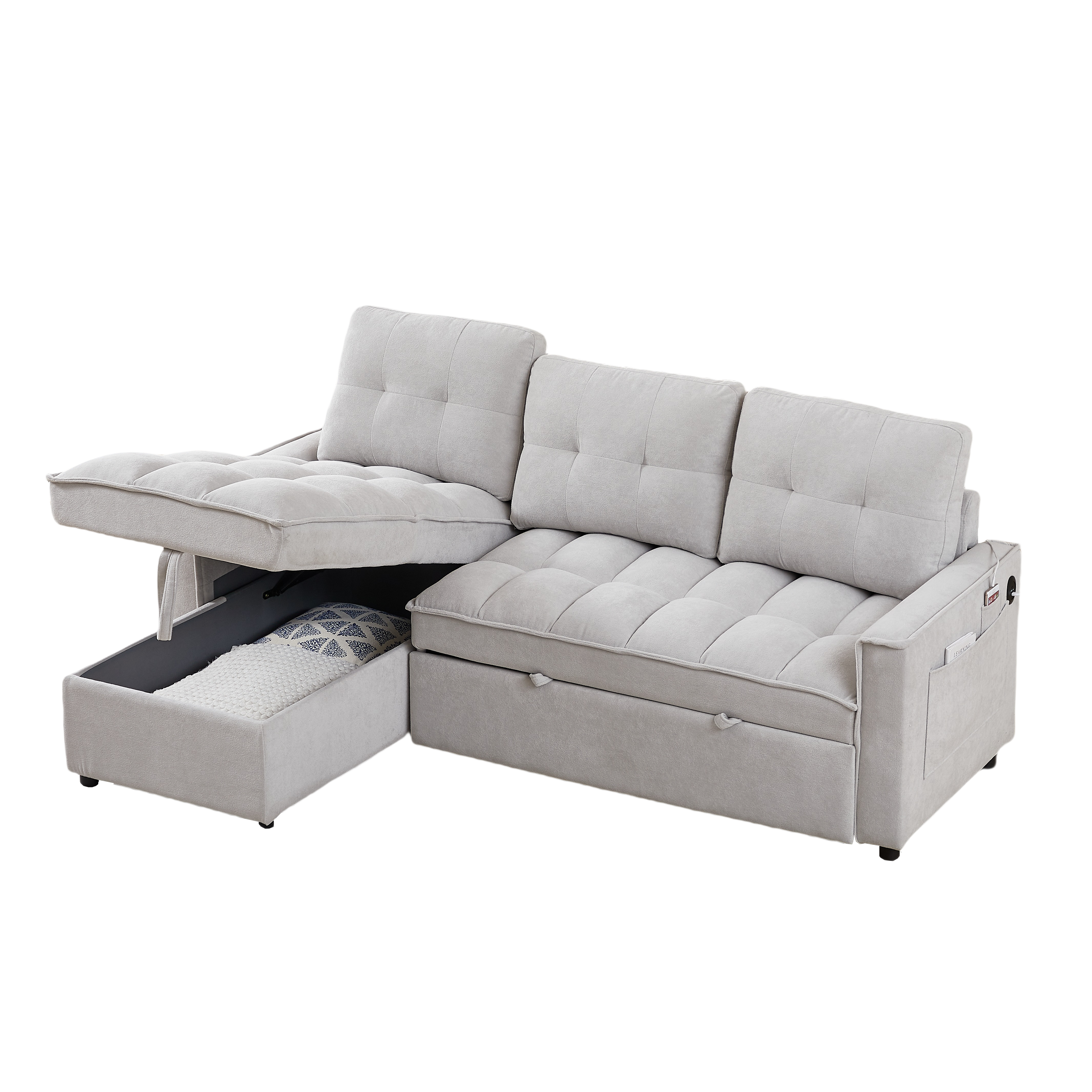 - ? STORAGE SPACE: The sleeper sofa has a hidden storage space underneath the chaise area and side storage pockets that provide an extra area for blankets, pillows, magazines, remotes or other items. This remarkable feature makes it an exceptional choice for those with limited storage space in their home.