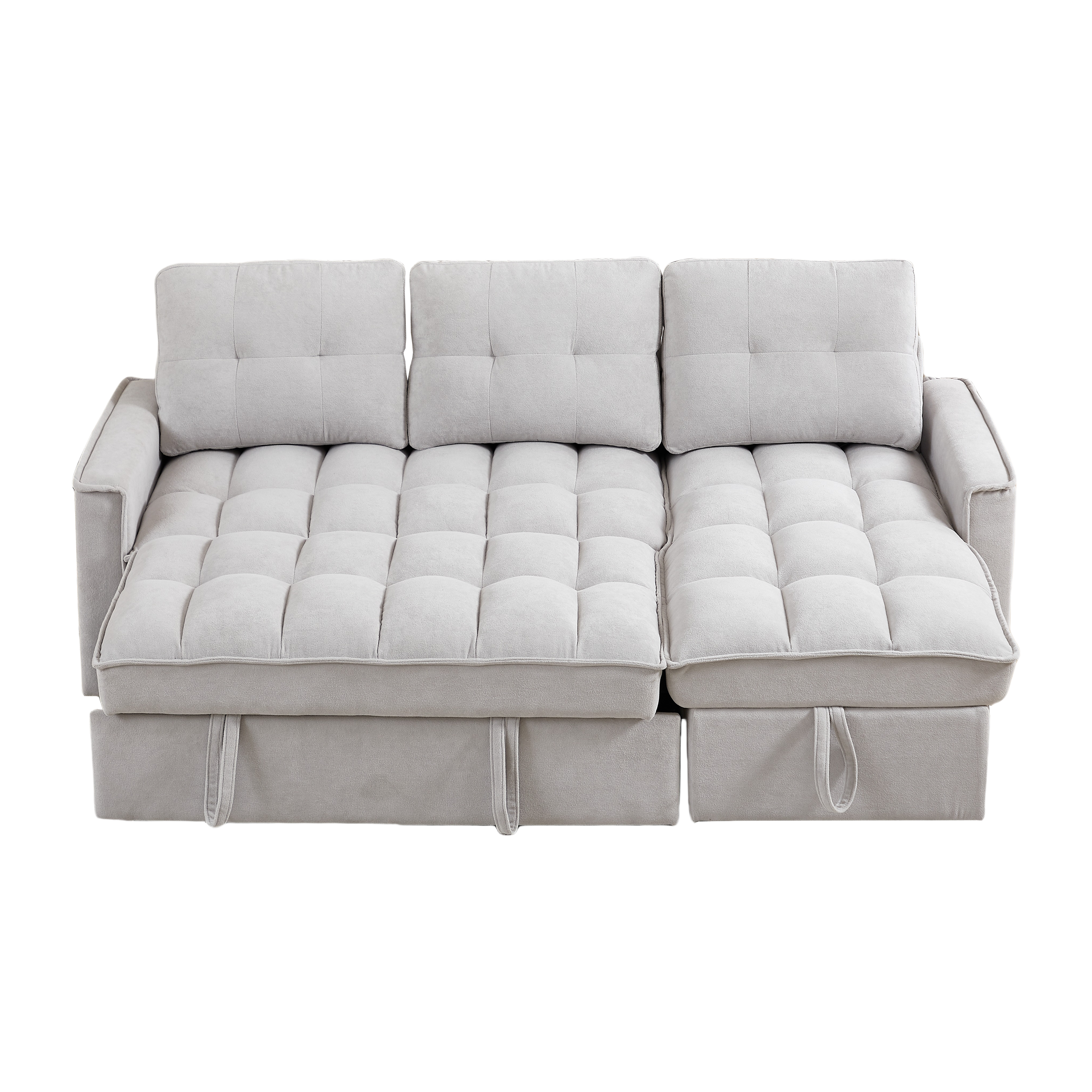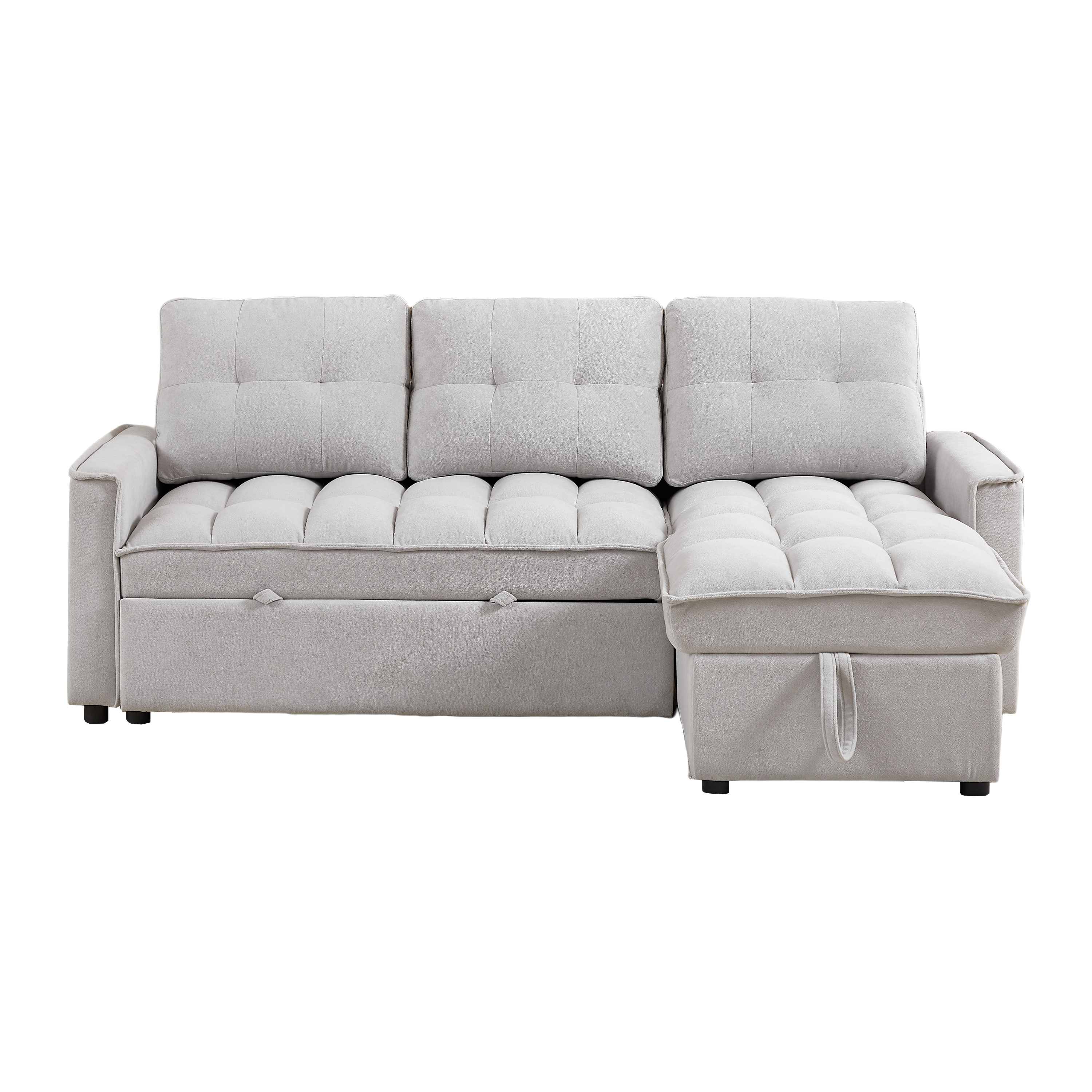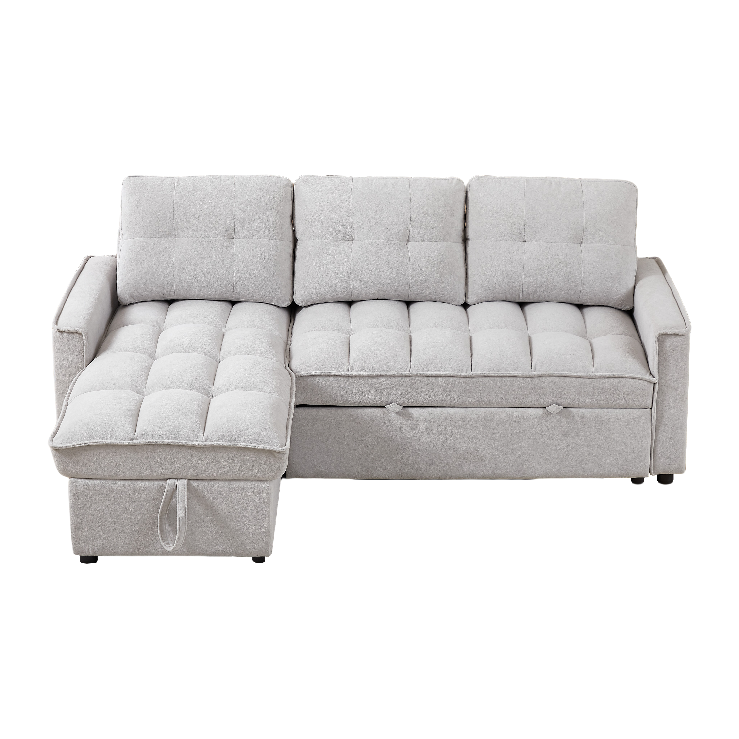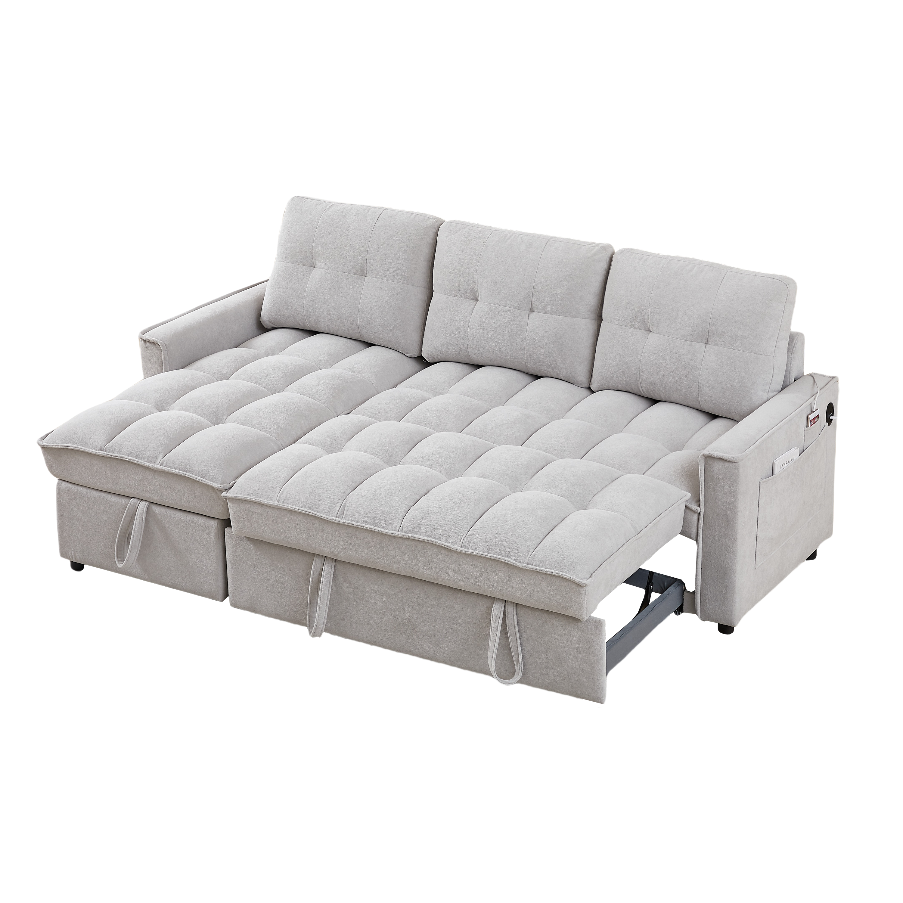 - ? STORAGE SPACE: The sleeper sofa has a hidden storage space underneath the chaise area and side storage pockets that provide an extra area for blankets, pillows, magazines, remotes or other items. This remarkable feature makes it an exceptional choice for those with limited storage space in their home.