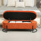 - Storage ottoman with concealed storage compartment functions as a foot rest or side accent piece.