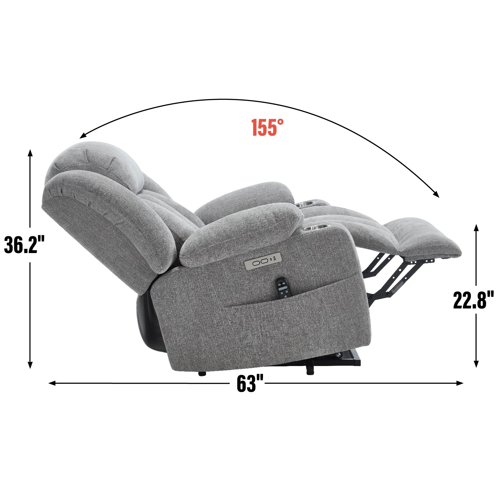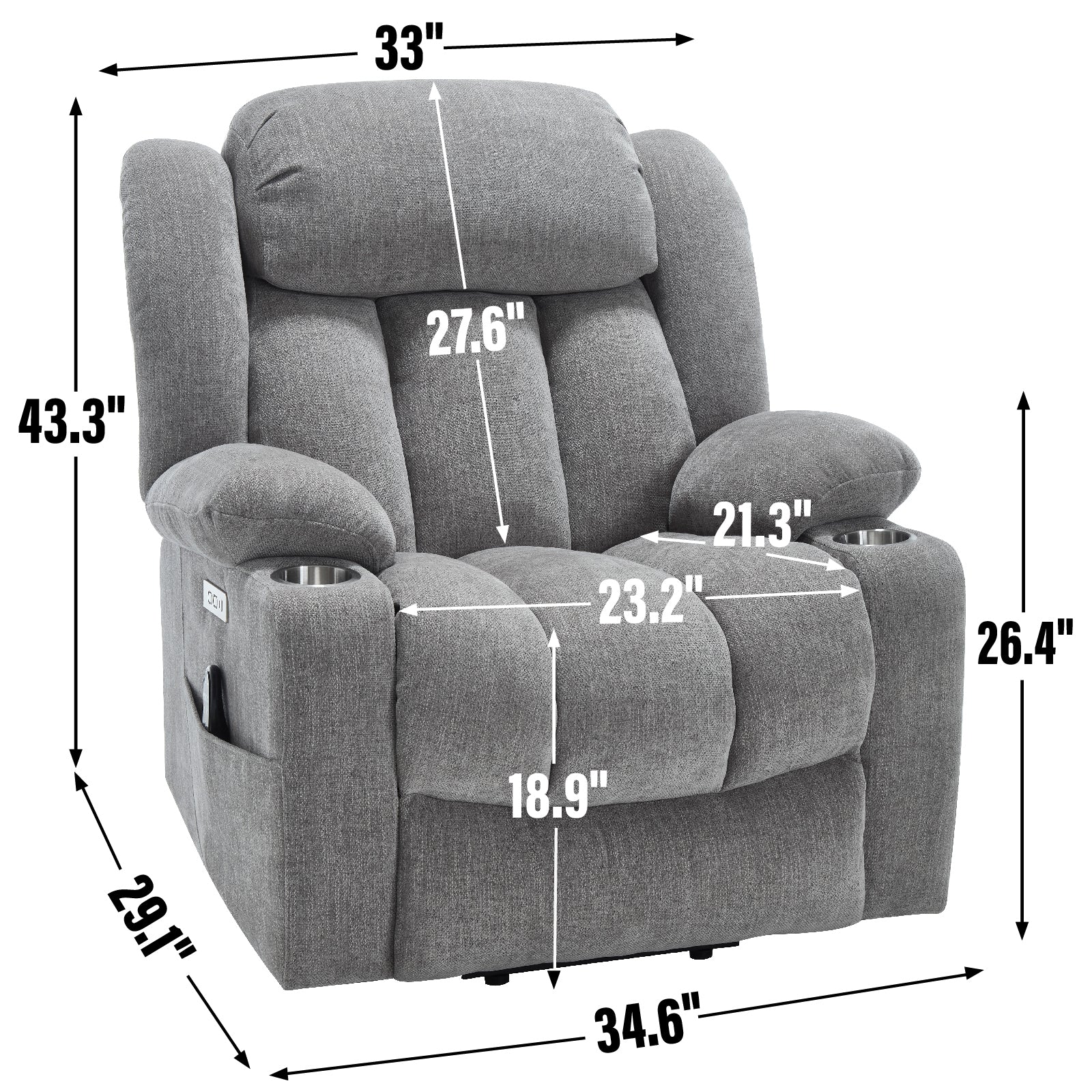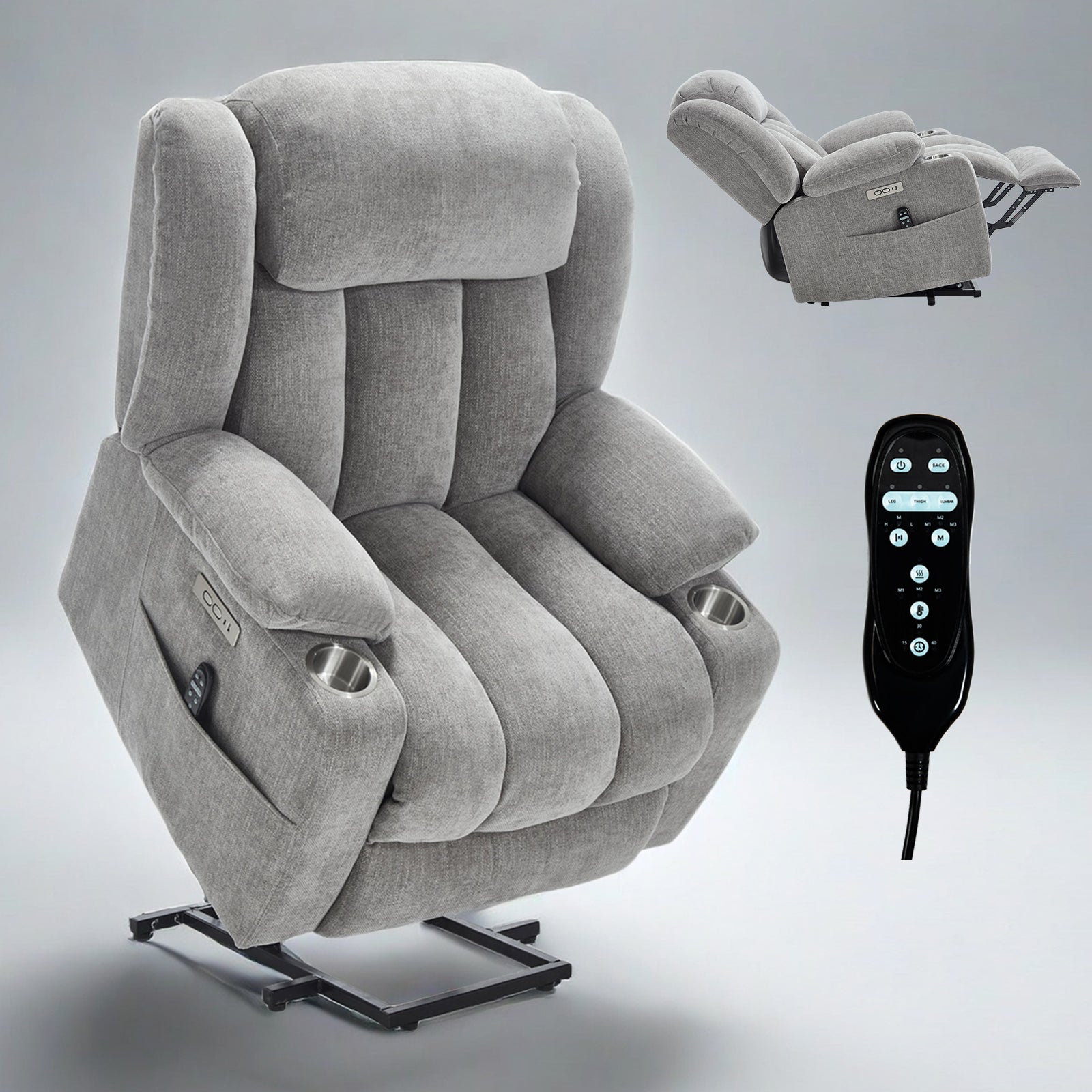 Up to 350 LBS Chenille Power Lift Recliner Chair, Heavy Duty Motion Mechanism with 8-Point Vibration Massage and Lumbar Heating, USB and Type-C Ports, Stainless Steel Cup Holders, Grey W1803S00071-djyc