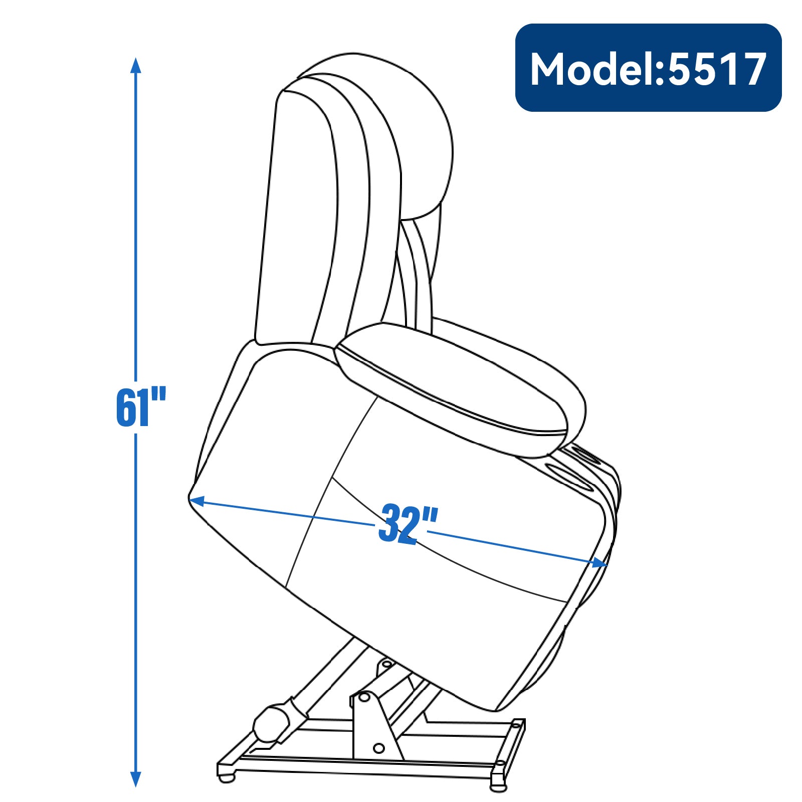 - POWER LIFT ASSISTANCE : Counter-balanced lift mechanism with ASTM standard actuator pushes the entire chair up to assist the user stand up easily without adding stress to back or knees, smoothly adjust to lift or reclining position you prefer by pressing two buttons on outside of right armrest when sit in the chair.