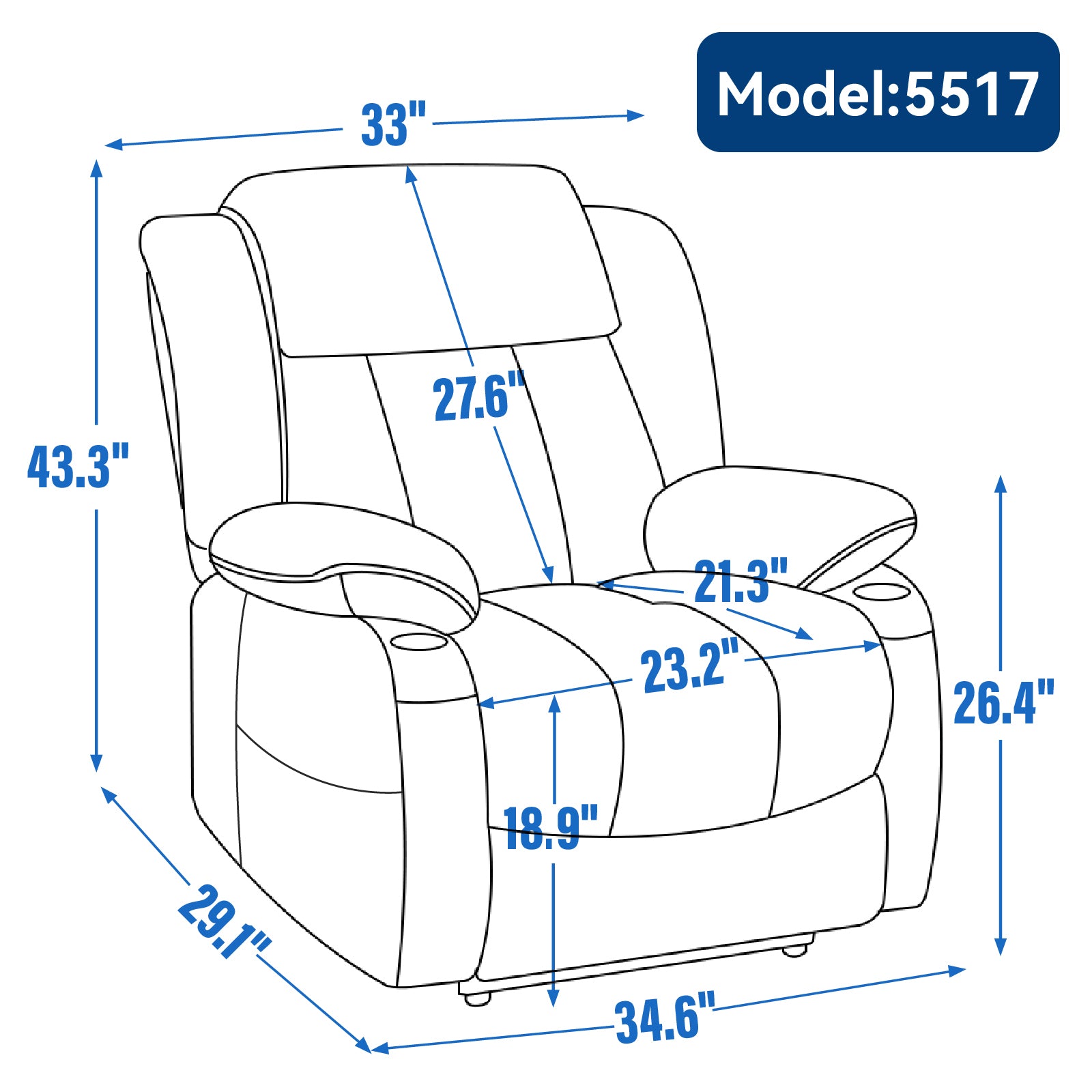 - DUAL USB PORTS & STAINLESS STEEL CUP HOLDERS : With the help of the USB ports( one USB type A, One Type C), your must-have devices can keep fully charged and right by your side (ONLY for low-power devices, such as mobile phones). In addition, you can put your drinks on the cup holder when you relaxing on the chair and watching TV. These are designed for your convenience.