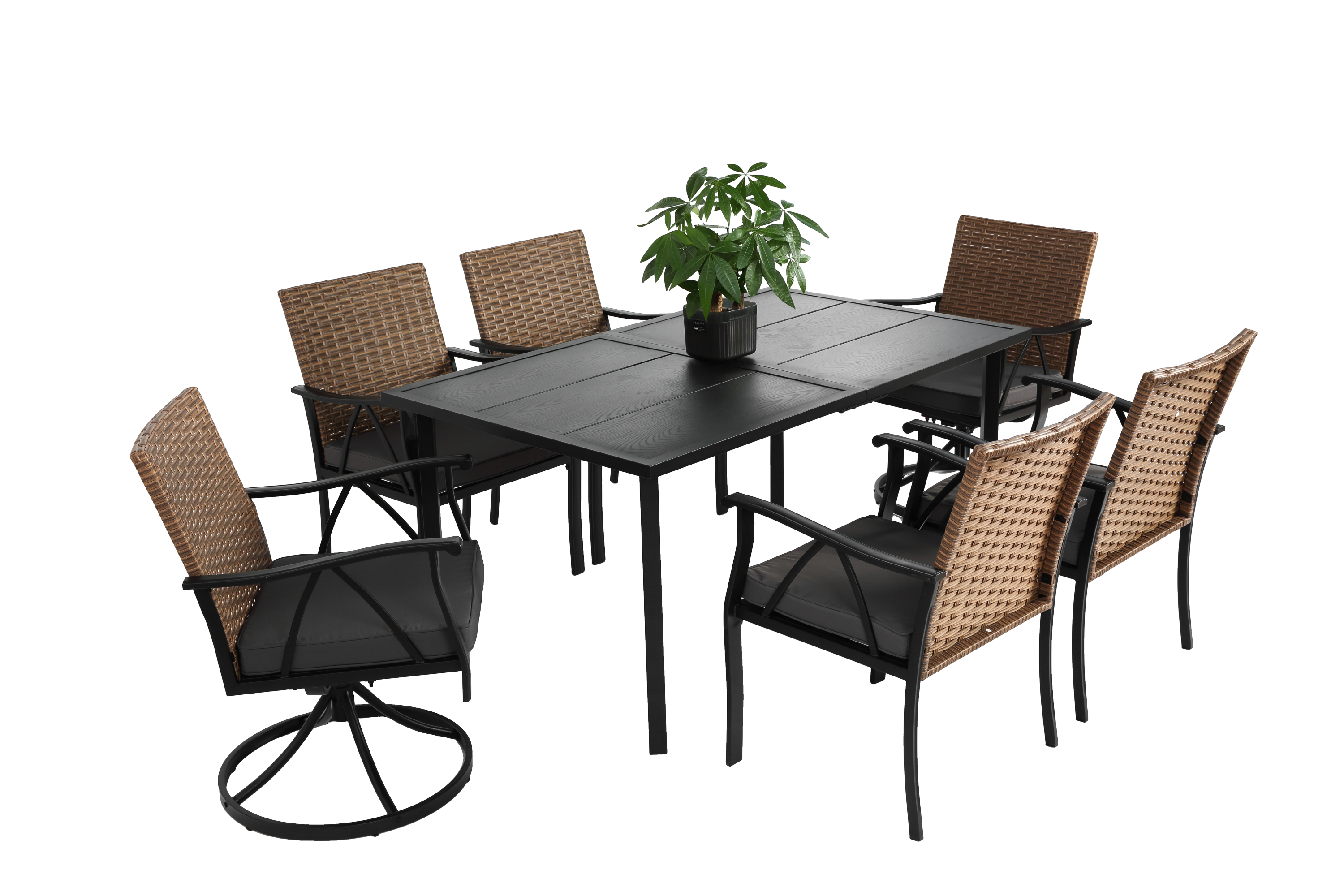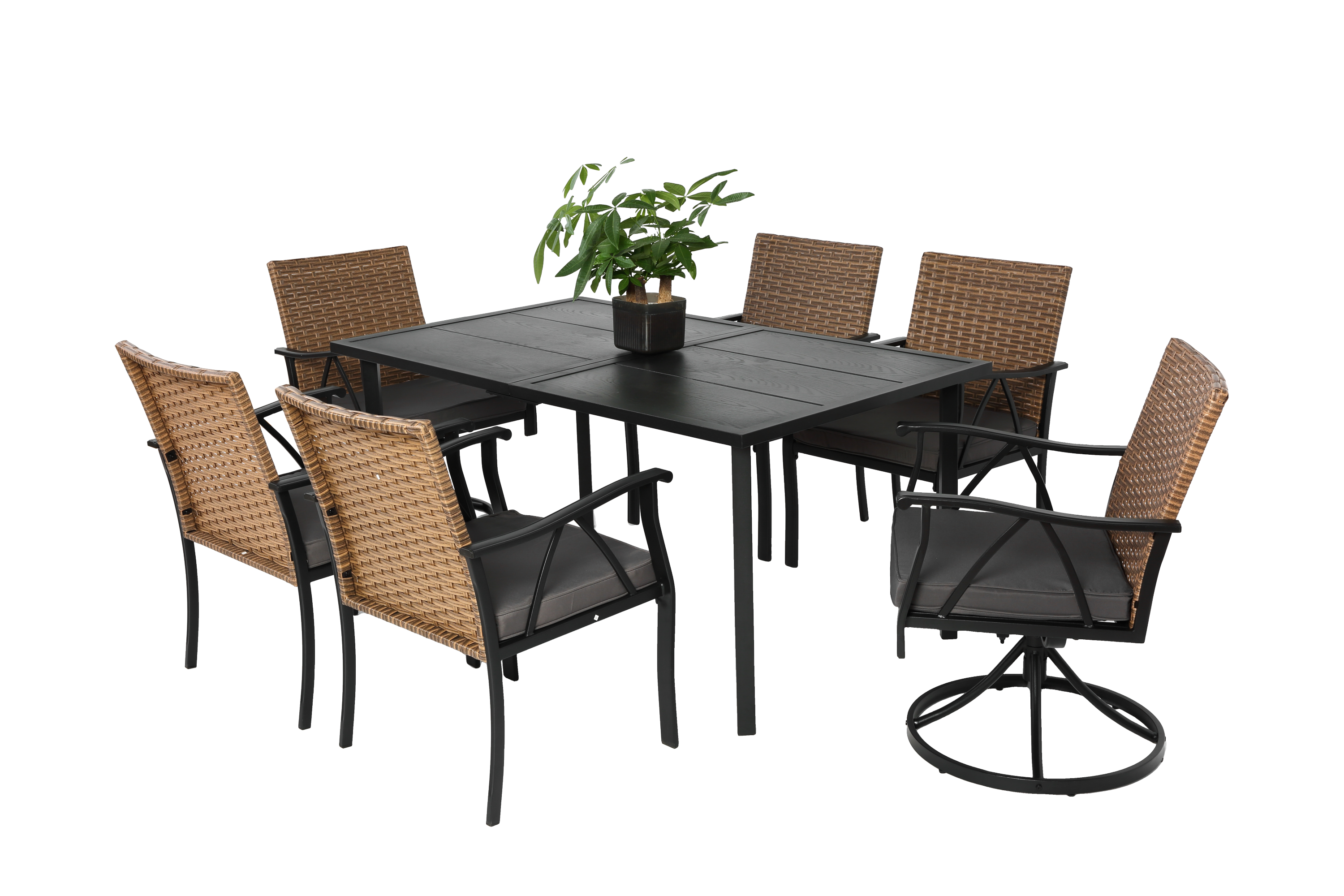 7 Piece Patio Dining Set ,Outdoor Wicker Furniture Set for Backyard Garden Deck Poolside with 2 Cushions Swivel Rocker Chairs,4 Cushions chairs,Table Top, Removable Cushions W640S00043-djyc