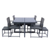 9 Pieces Patio Dining Sets Outdoor Space Saving Rattan Chairs with Glass Table Top Grey Wicker + Dark Grey Cushion W329S00041-djyc