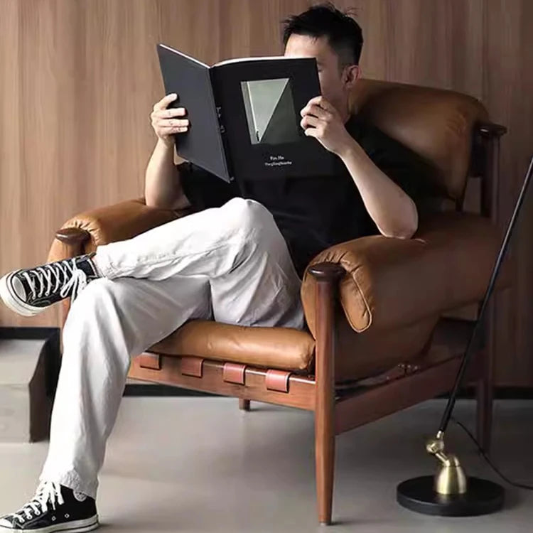 | A Better Home Starts with BICROOM | **Luxurious Comfort**: Experience the perfect blend of style and relaxation with our chair, crafted from premium genuine leather and soft figure cotton. Ideal for unwinding after a long day, this chair makes comfort a priority. **Sustainable Elegance**: Made from sustainable ash wood, this chair not only adds elegance to your space but also supports eco-friendly living. Its sturdy construction ensures years of durability without compromising on style. **Timeless Design**: Elevate your interior with this beautifully designed chair, showcasing a modern aesthetic combined with classic materials. The rich hue of the leather and the natural grain of the wood create a striking focal point in any room. **Versatile Style**: Whether you’re enhancing your living room or adding a cozy touch to your office, this chair perfectly complements a variety of decor styles, making it the ideal choice for any setting. **Easy Maintenance**: The high-quality materials used in this chair ensure easy cleaning and maintenance, allowing you to enjoy its beauty and comfort without the hassle. **Comfortable Support**: Featuring a thoughtfully designed structure, our chair provides optimal support for your back and neck, making it perfect for reading, relaxing, or entertaining guests. **Functional Art**: More than just a piece of furniture, this chair serves as a statement art piece, showcasing exquisite craftsmanship and design that will impress your guests and enhance your living space. |