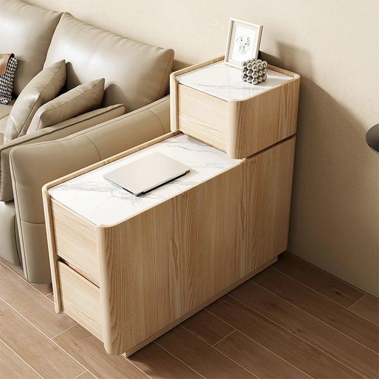 Elegant Pine Multi-layer Board Coffee Table with Sintered Stone Top and Synthetic Leather Finish - Modern Living Room Furniture fmxjs-5351