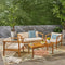 Outdoor 4-Seater Acacia Wood Chat Set with Coffee Table with Cushions, Teak and Beige 63347.00BGE-djyc
