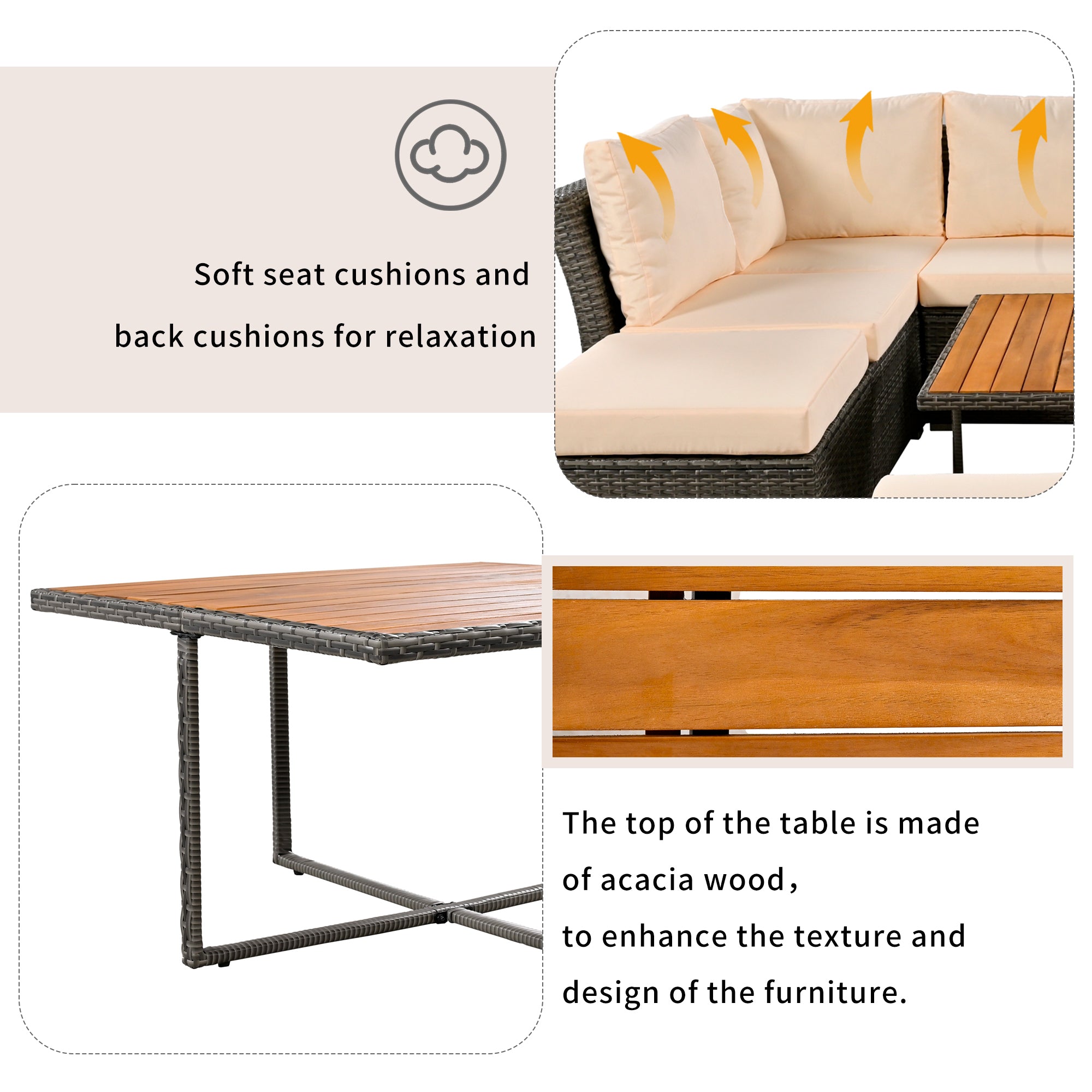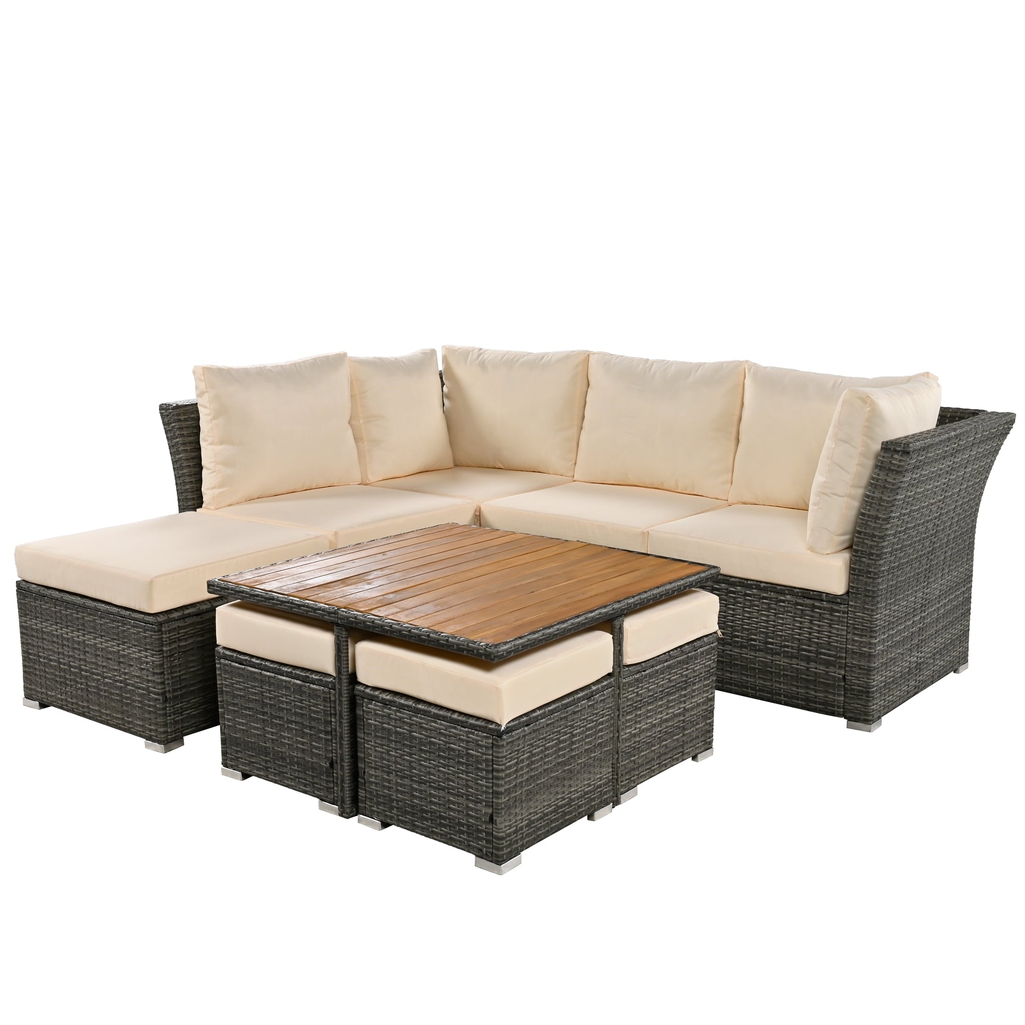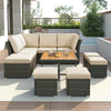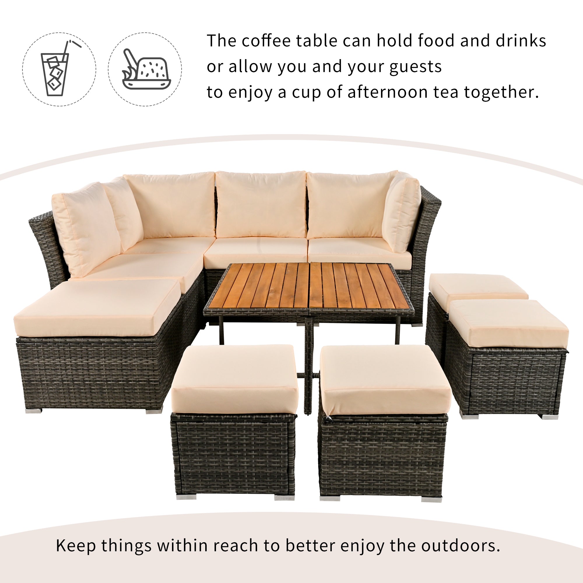U_STYLE Patio Furniture Set, 10 Piece Outdoor Conversation Set, CoffeeTable with Ottomans, Solid wood coffee table WY000378AAA-djyc