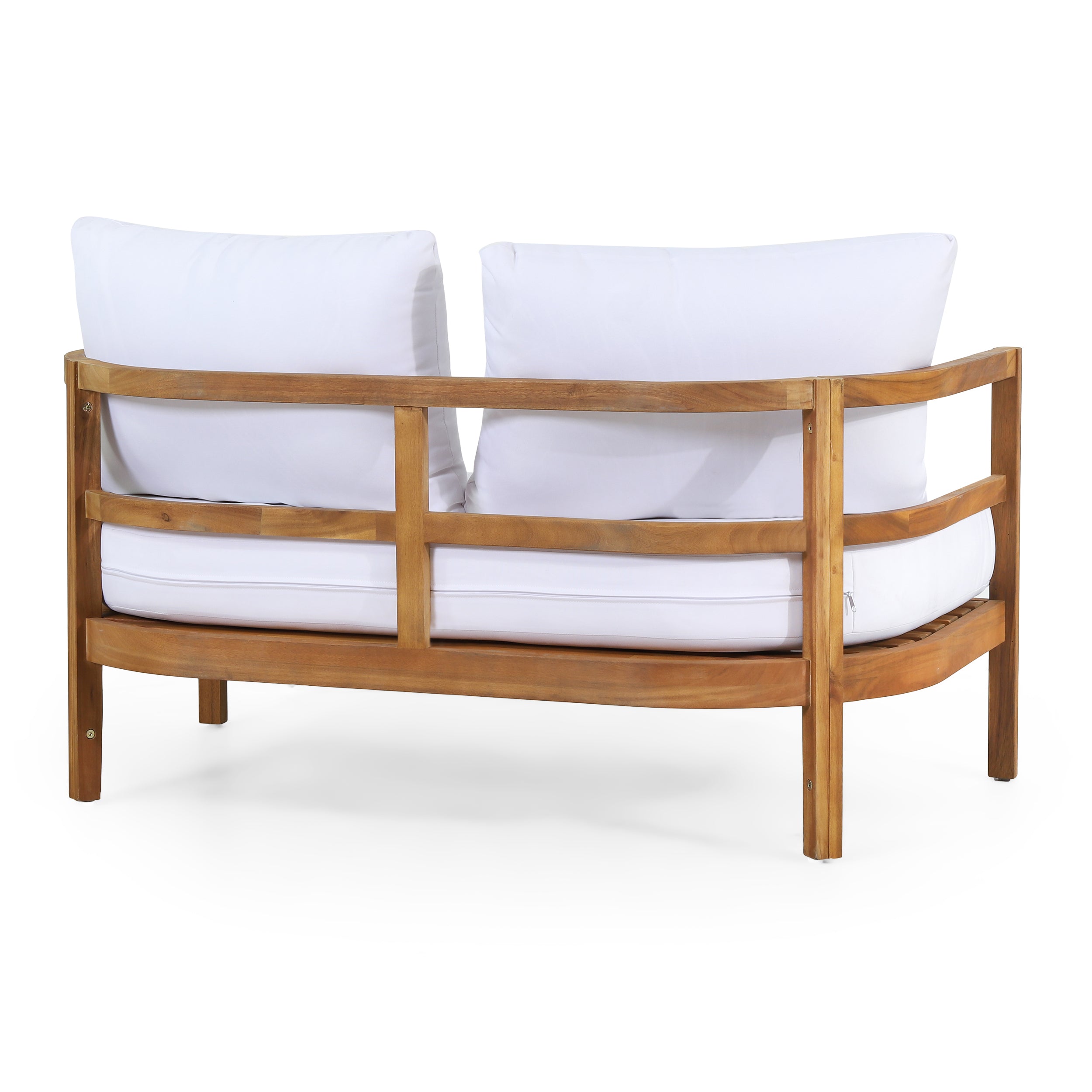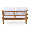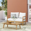 Outdoor Acacia Wood Loveseat and Coffee Table Set with Cushions, Light Teak and White 72439.00WHI-djyc