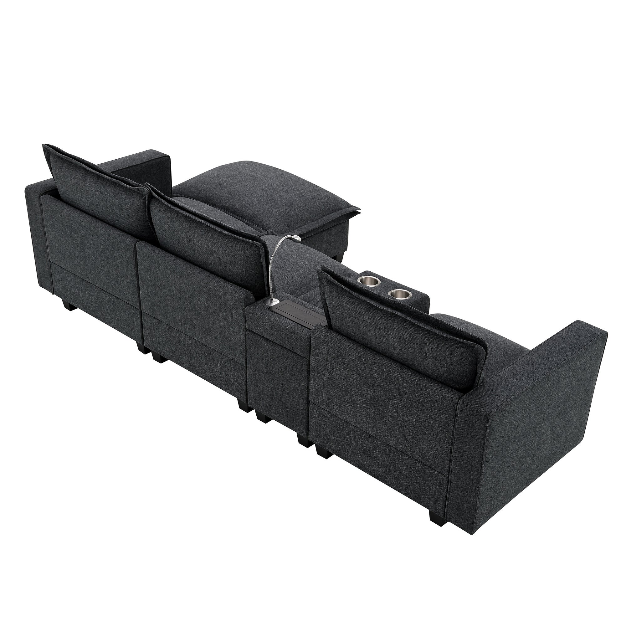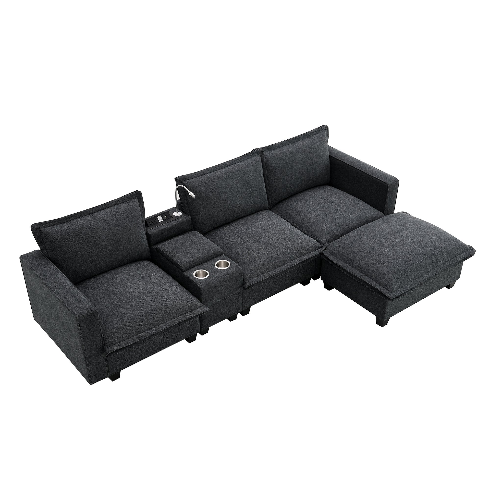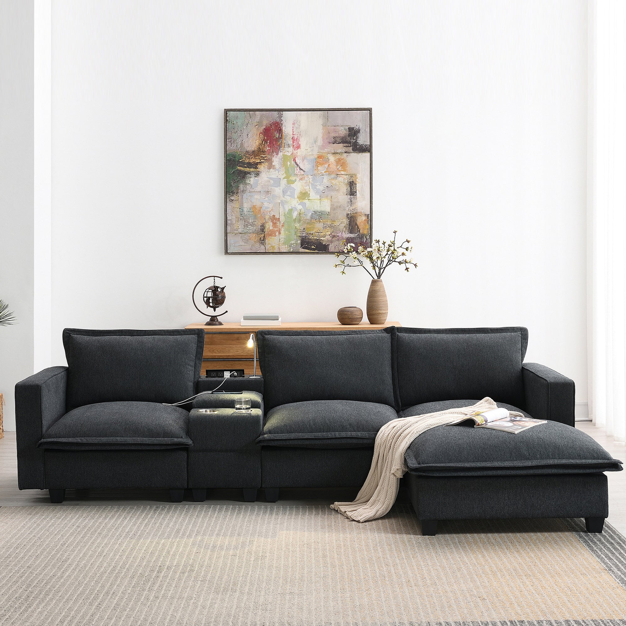 [VIDEO+NEW]109*57' Modern Sectional Cloud Sofa with Console,USB charger,Reading Light,Cup Holder,Wide Seat,4 Seat Chenille Modular Couch,Storable Indoor Funiture for Living Room,Apartment,2 Colors N723S9720G-djyc