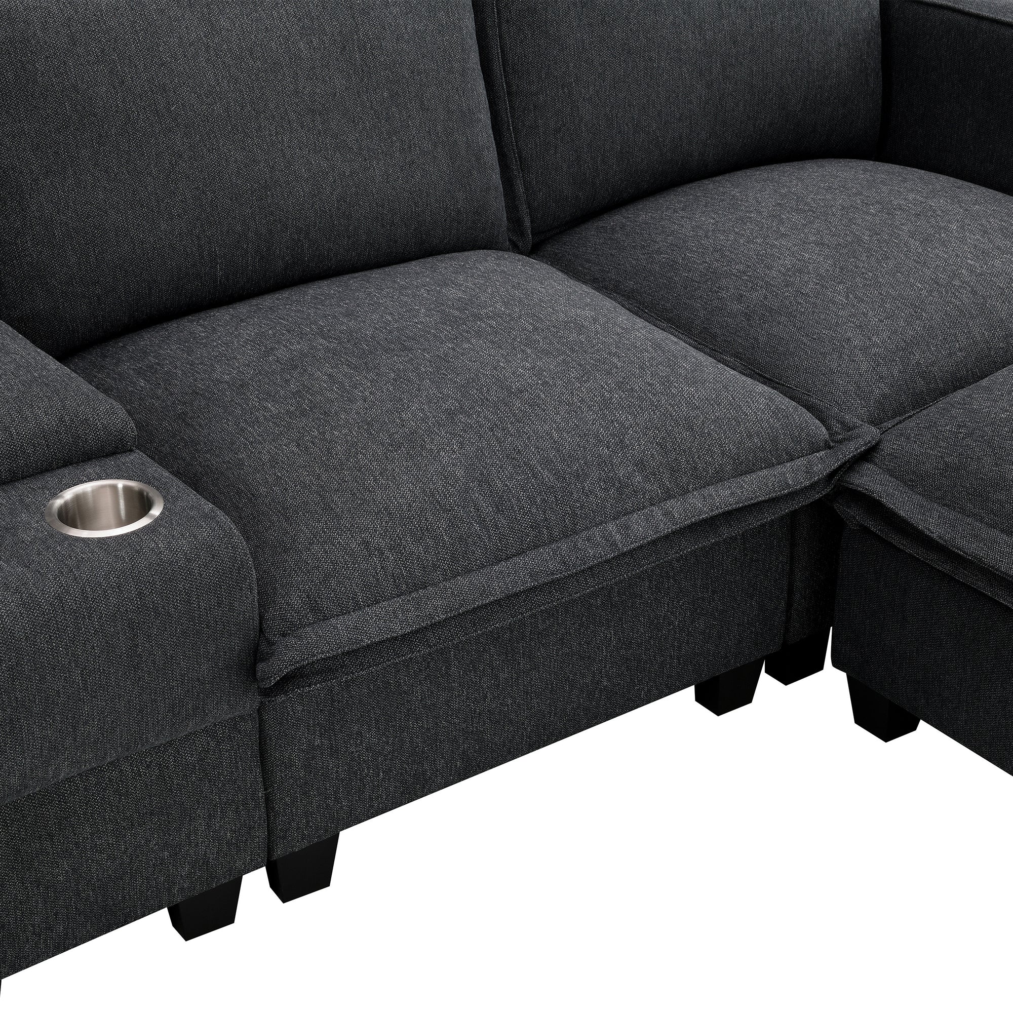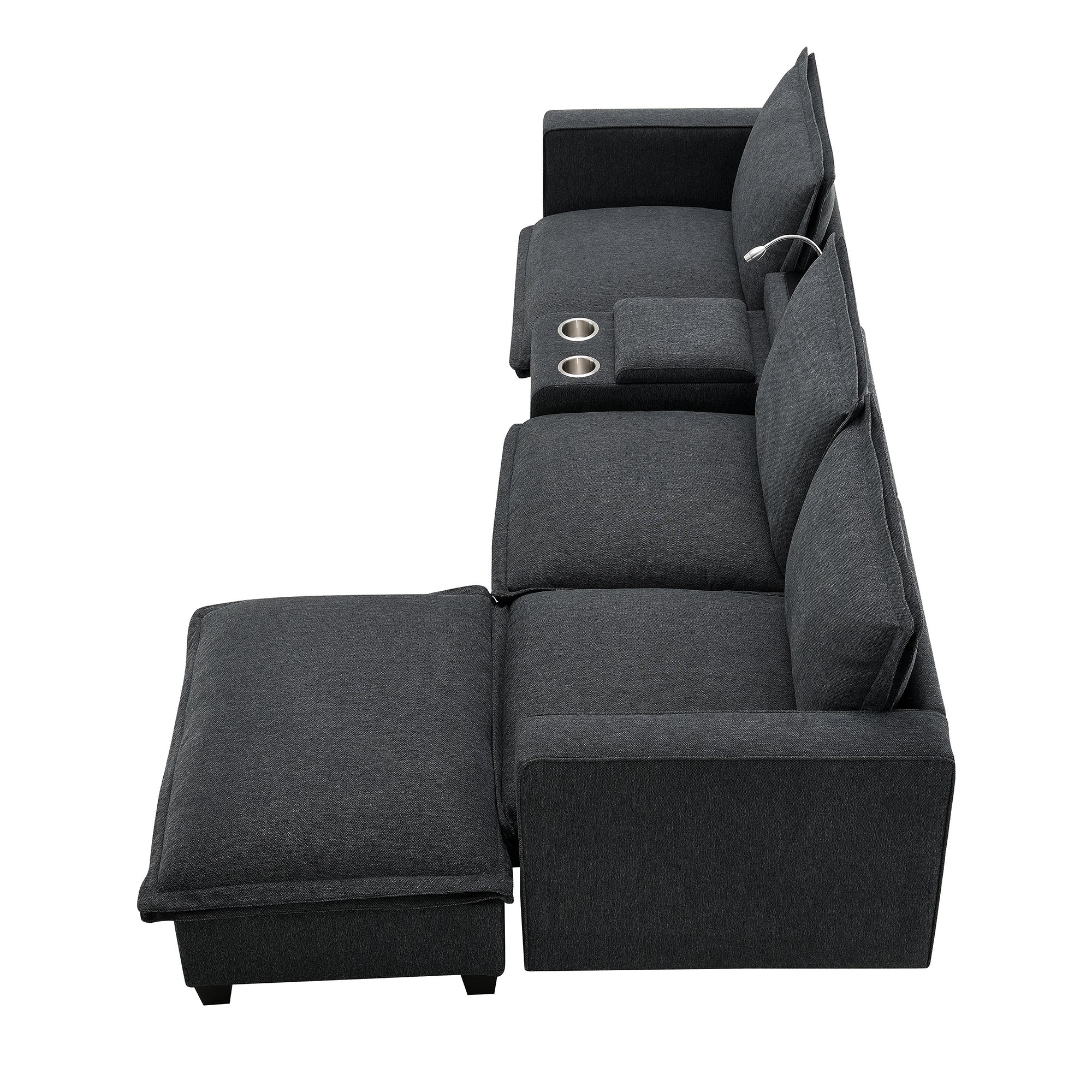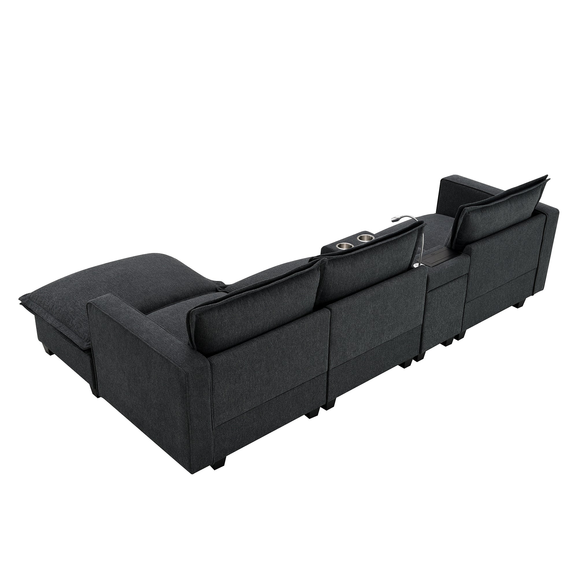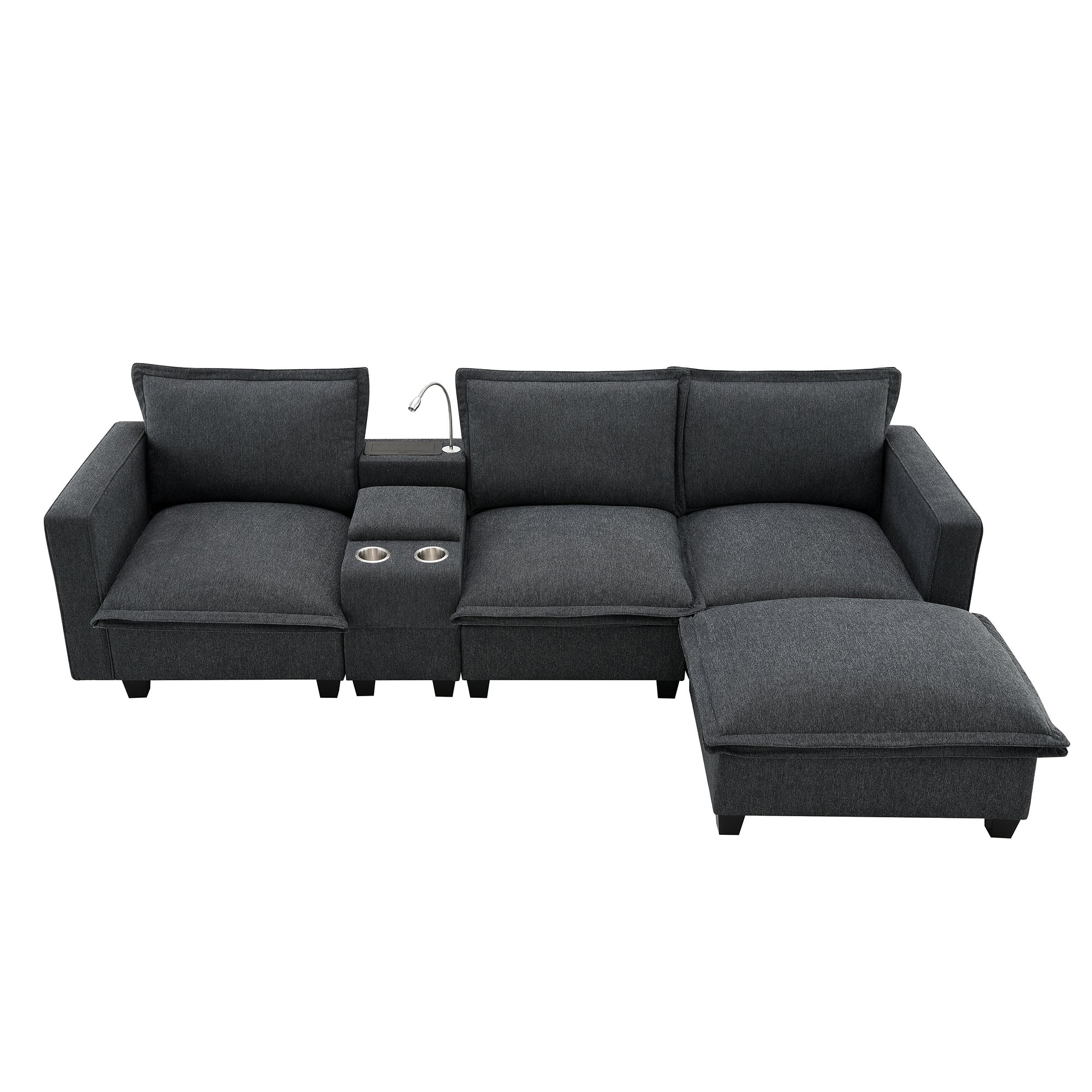 [VIDEO+NEW]109*57' Modern Sectional Cloud Sofa with Console,USB charger,Reading Light,Cup Holder,Wide Seat,4 Seat Chenille Modular Couch,Storable Indoor Funiture for Living Room,Apartment,2 Colors N723S9720G-djyc
