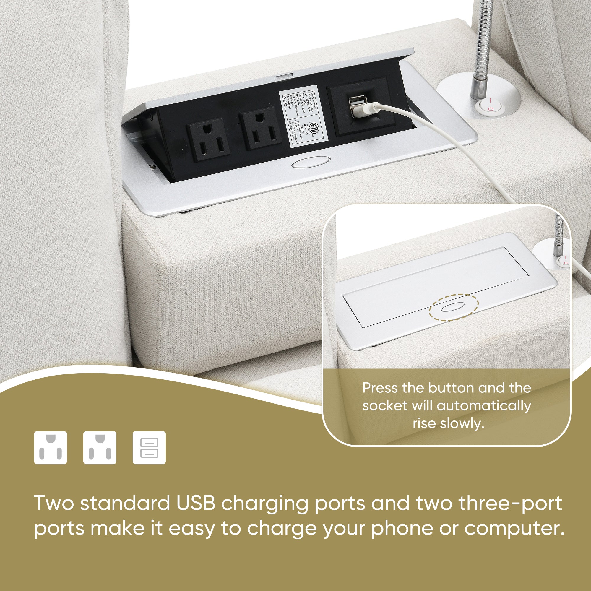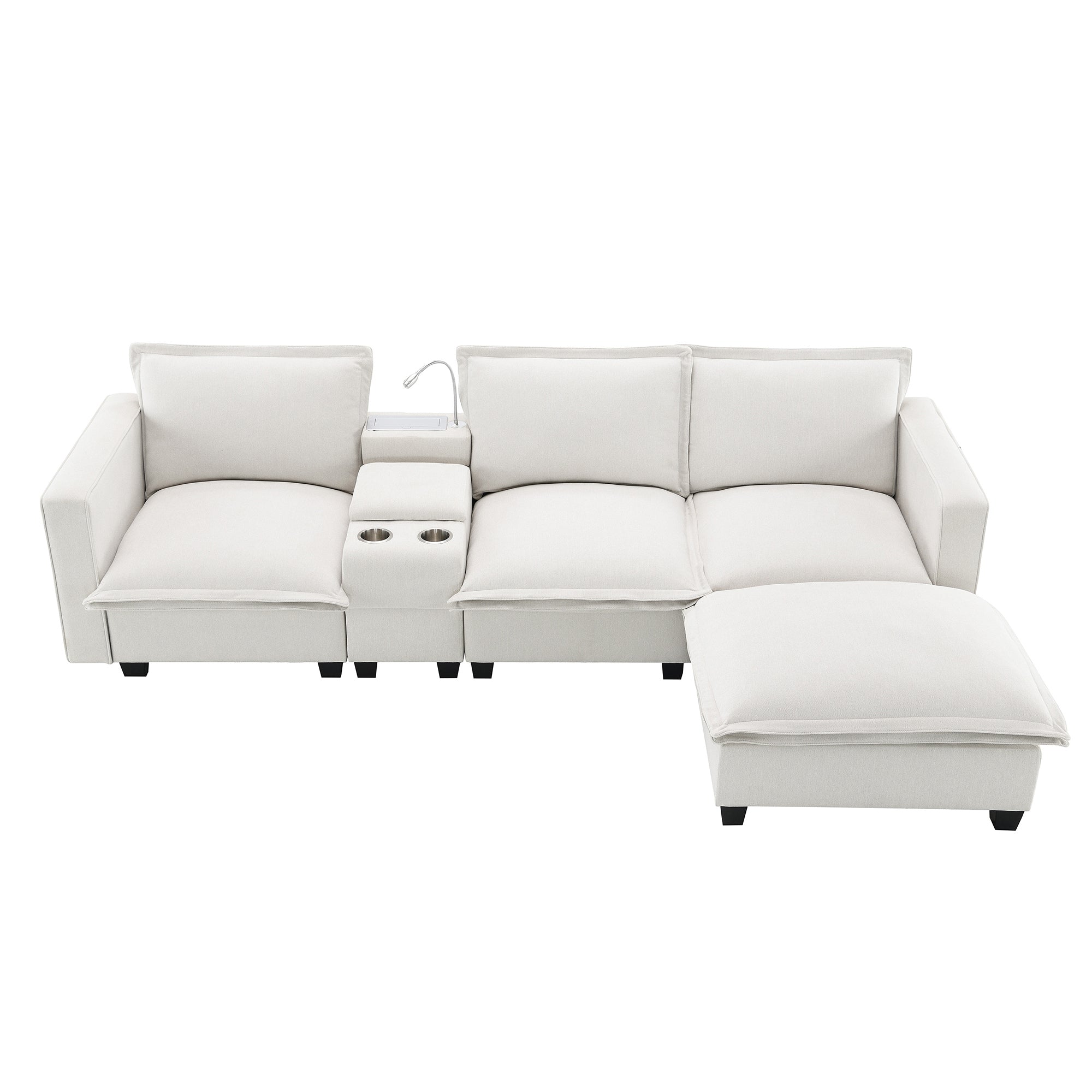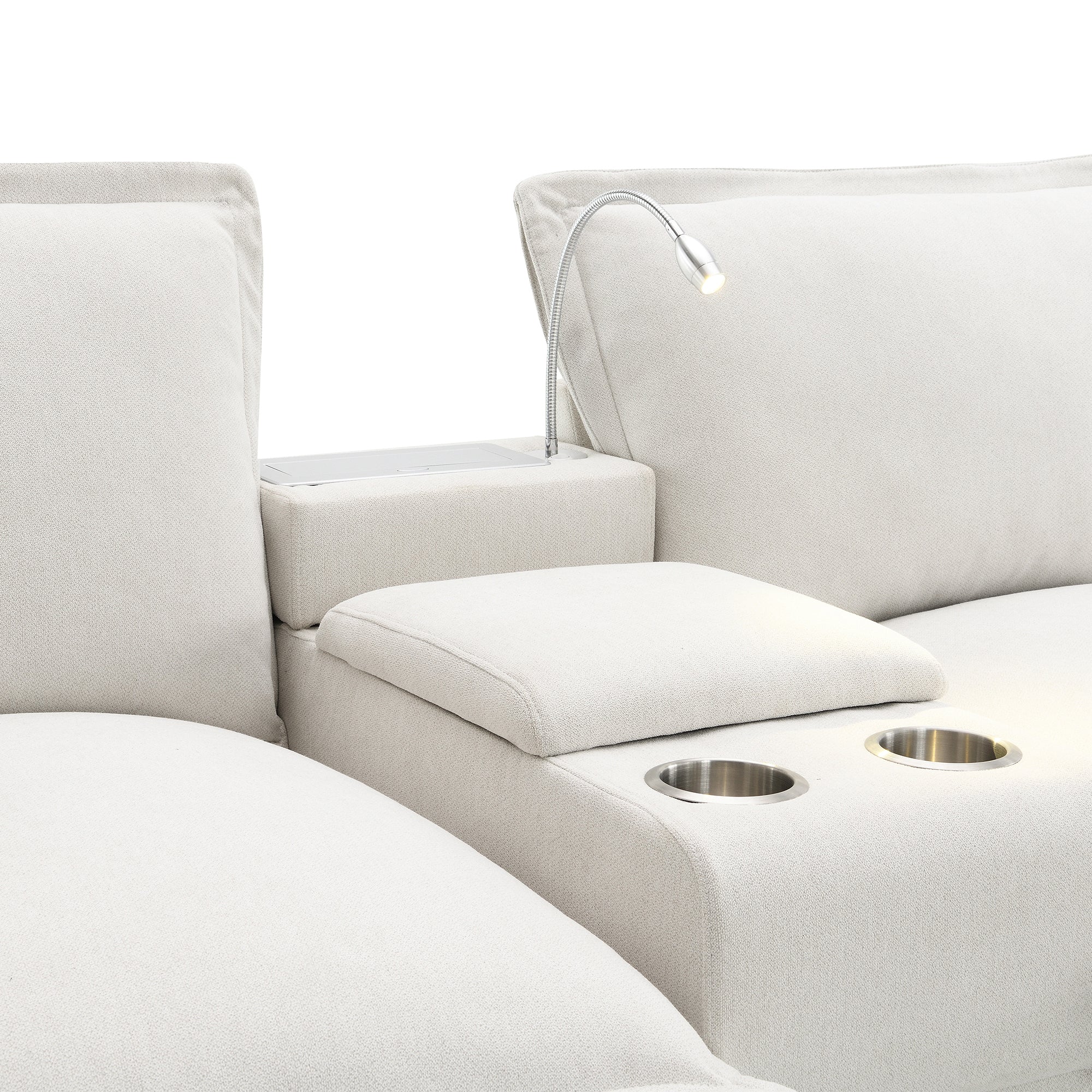 109*57'Modern Sectional Cloud Sofa with Console,USB Charging Port,Reading Light,Cup Holder,4 Seat Chenille Modular Couch,Storable Indoor Funiture for Living Room,Apartment,2 Color GS009720AAA-djyc