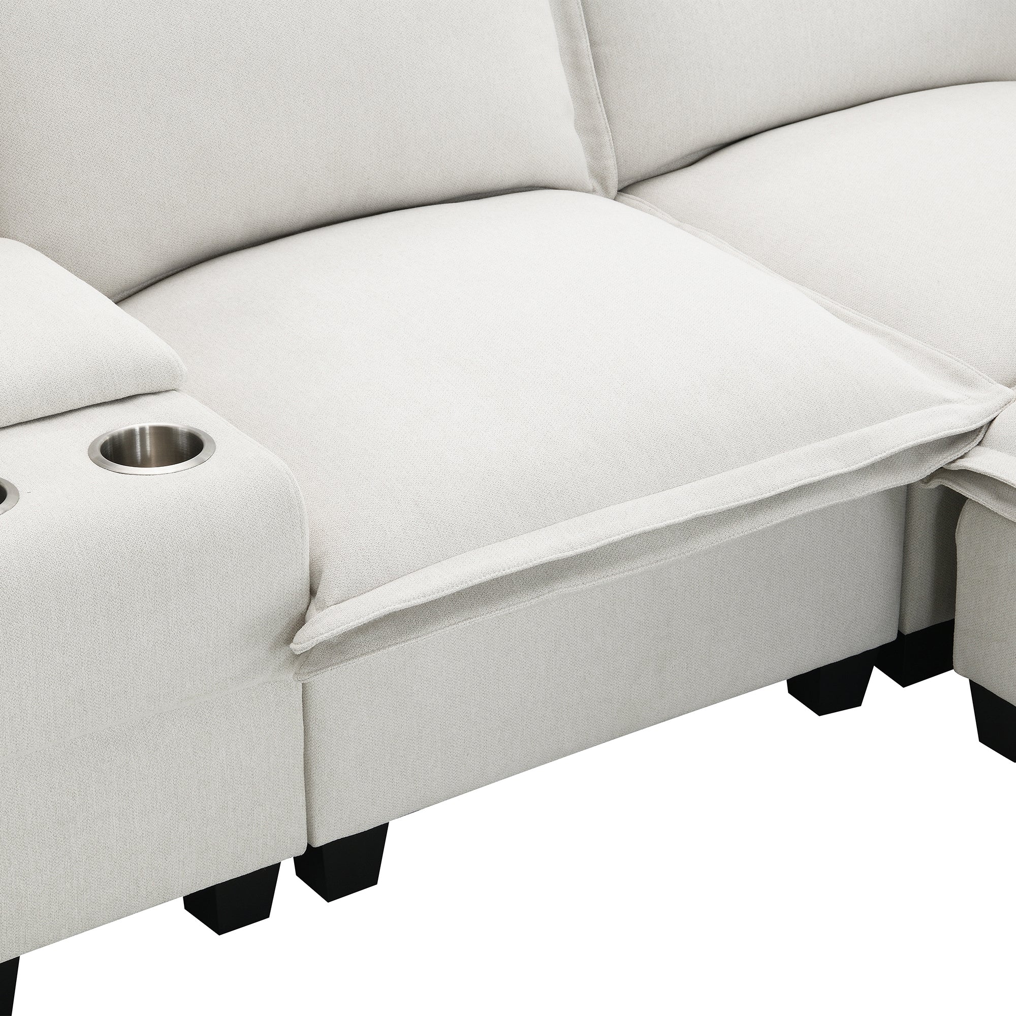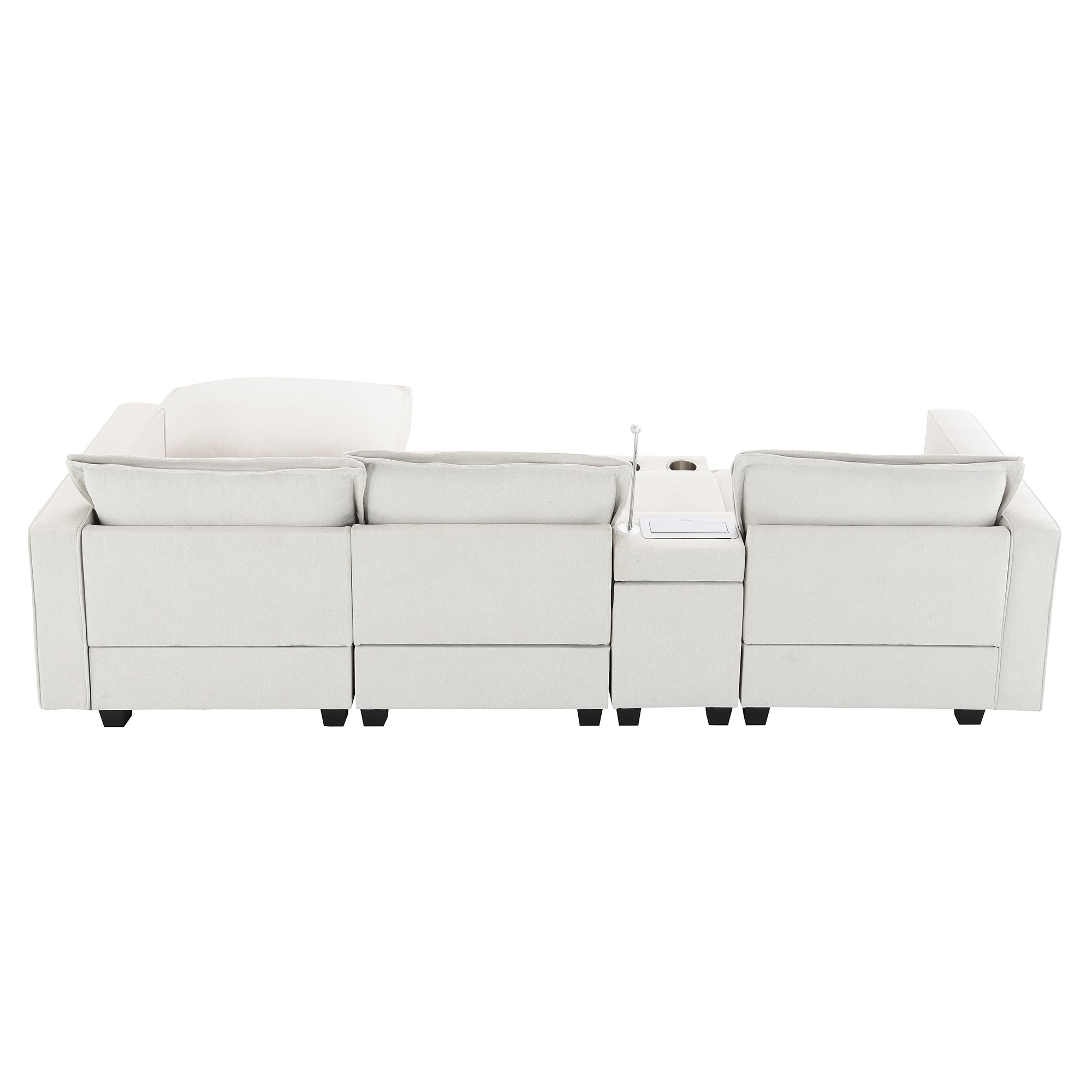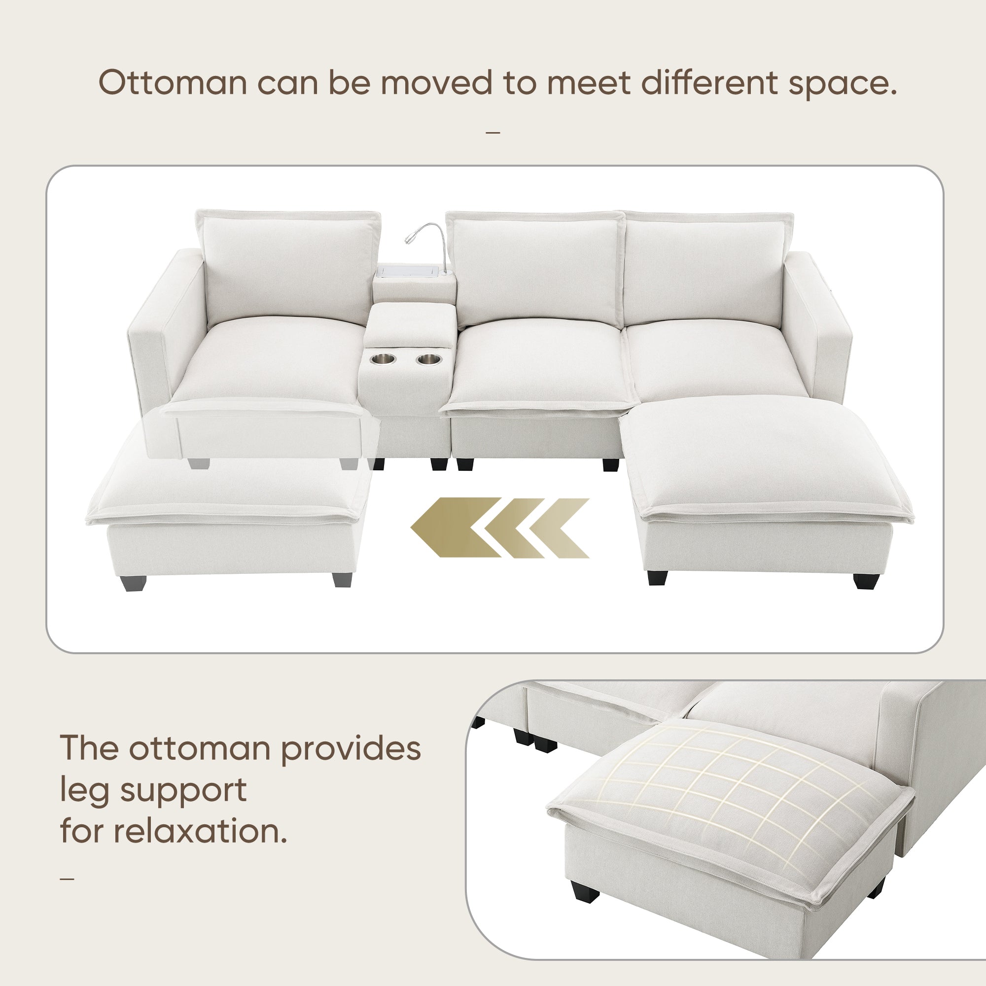 109*57'Modern Sectional Cloud Sofa with Console,USB Charging Port,Reading Light,Cup Holder,4 Seat Chenille Modular Couch,Storable Indoor Funiture for Living Room,Apartment,2 Color GS009720AAA-djyc