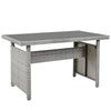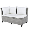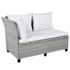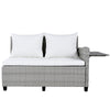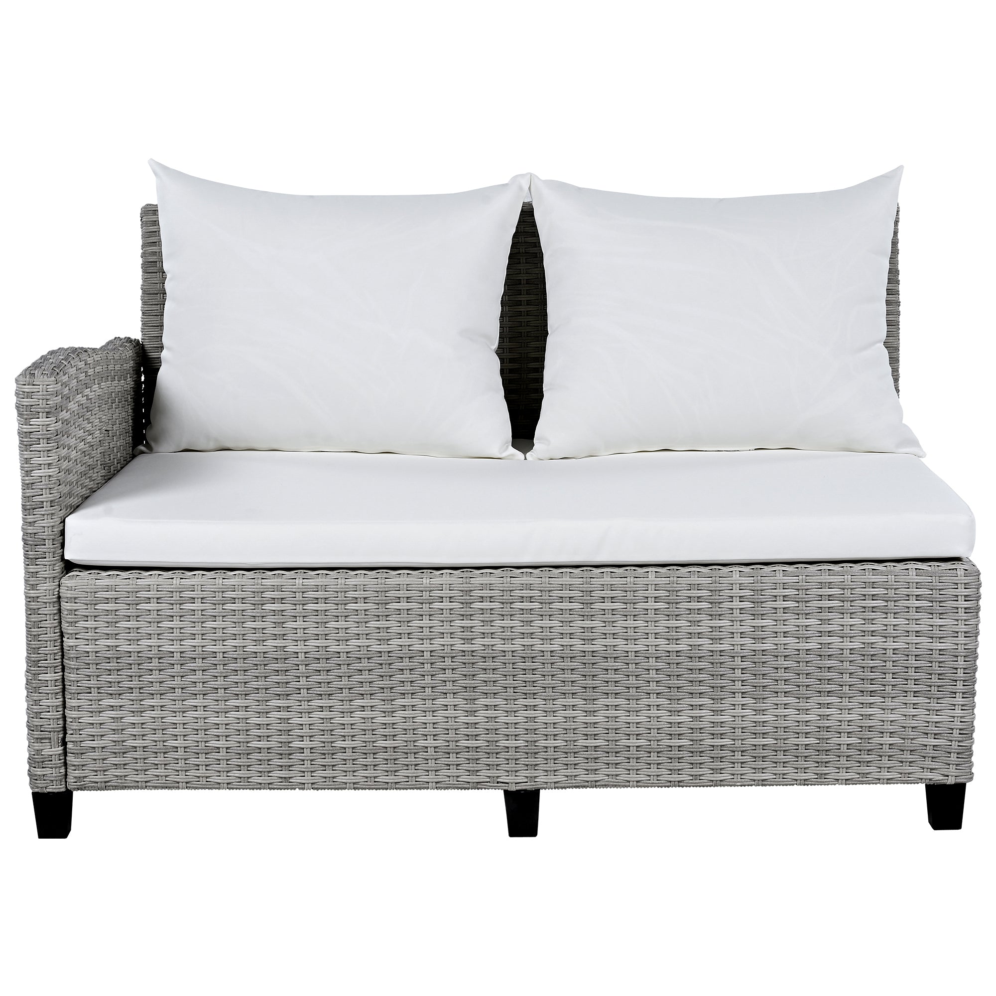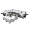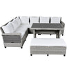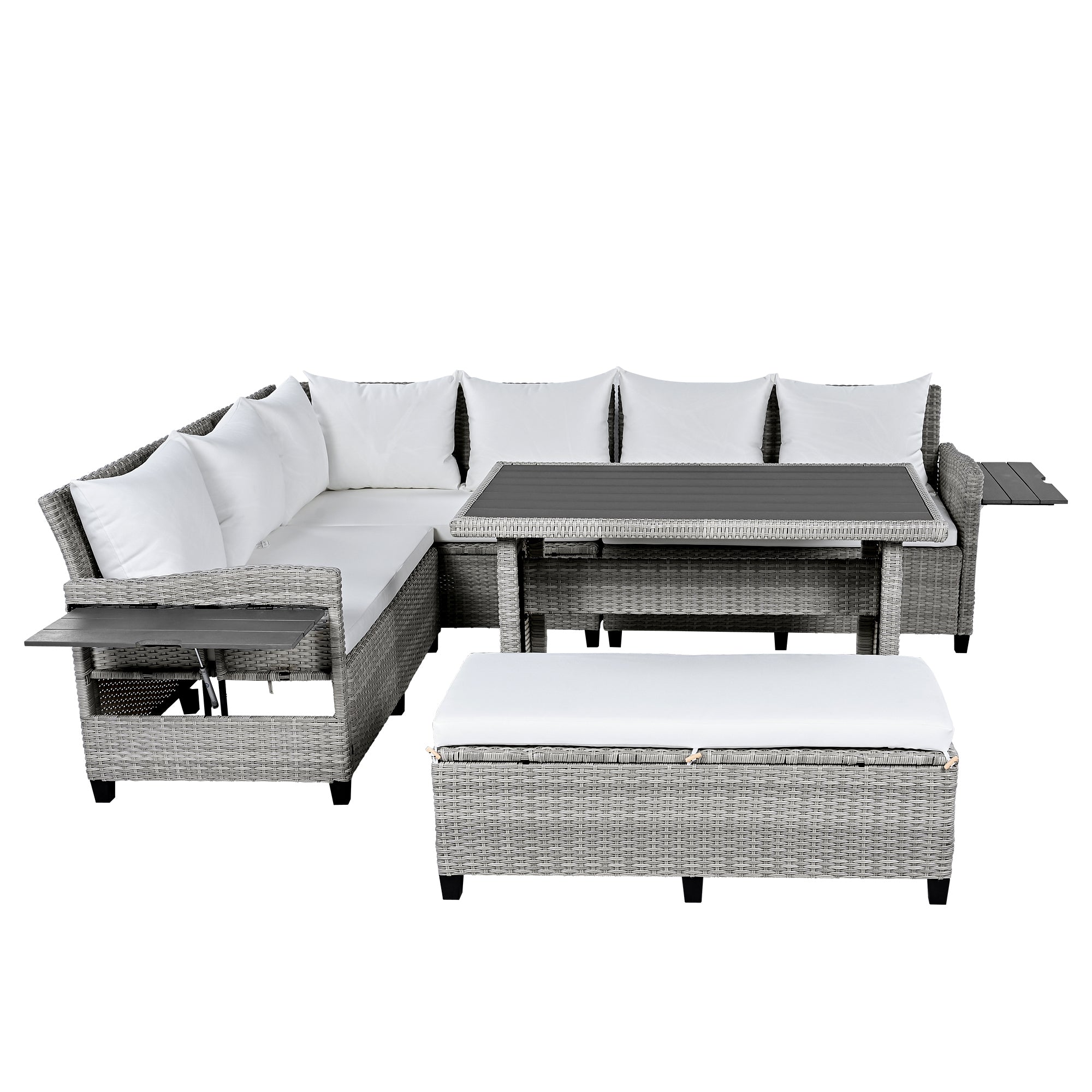 - [5-Piece Sectional Sofa Set] With 2 loveseats with side tables, 1 corner sofa, 1 long bench and 1 dining table, this 5pcs rattan sofa set can comfortably seat 7 people while the spacious table is perfect for placing food and drinks. Adjustable feet under table will make it level and stable as much as possible. Transform your backyard into a leisure place easily and enjoy your sunny time!