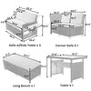 | Overall Product Dimension | Loveseat:46.3x25.6x29.5inch(LXWXH) Corner Sofa:45.5x25.4x29.5inch(LXWXH) Long Bench:43.3x17.7x16.5inch(LXWXH) Table:47.2x27.6x27.6inch(LXWXH) Back Pillow(except corner sofa pillow): 22.4x16.5x5.1inch(LXWXT) 2 Corner Sofa Pillow:19.7x16.5x5.1inch(LXWXT) Side Table:23x.10.4inch(LXW) |
