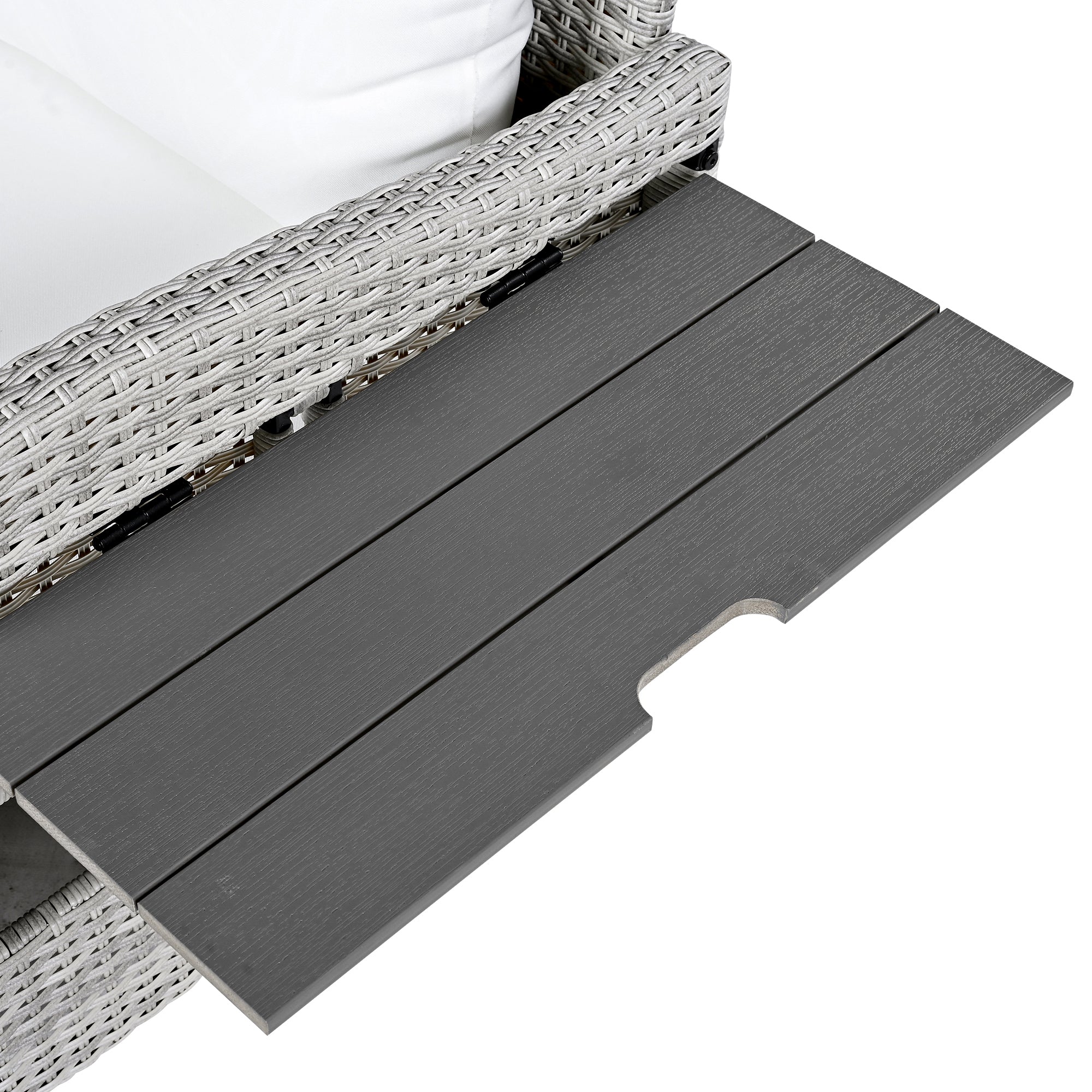 | Color | gray wicker+gray plastic wood+white fabric |