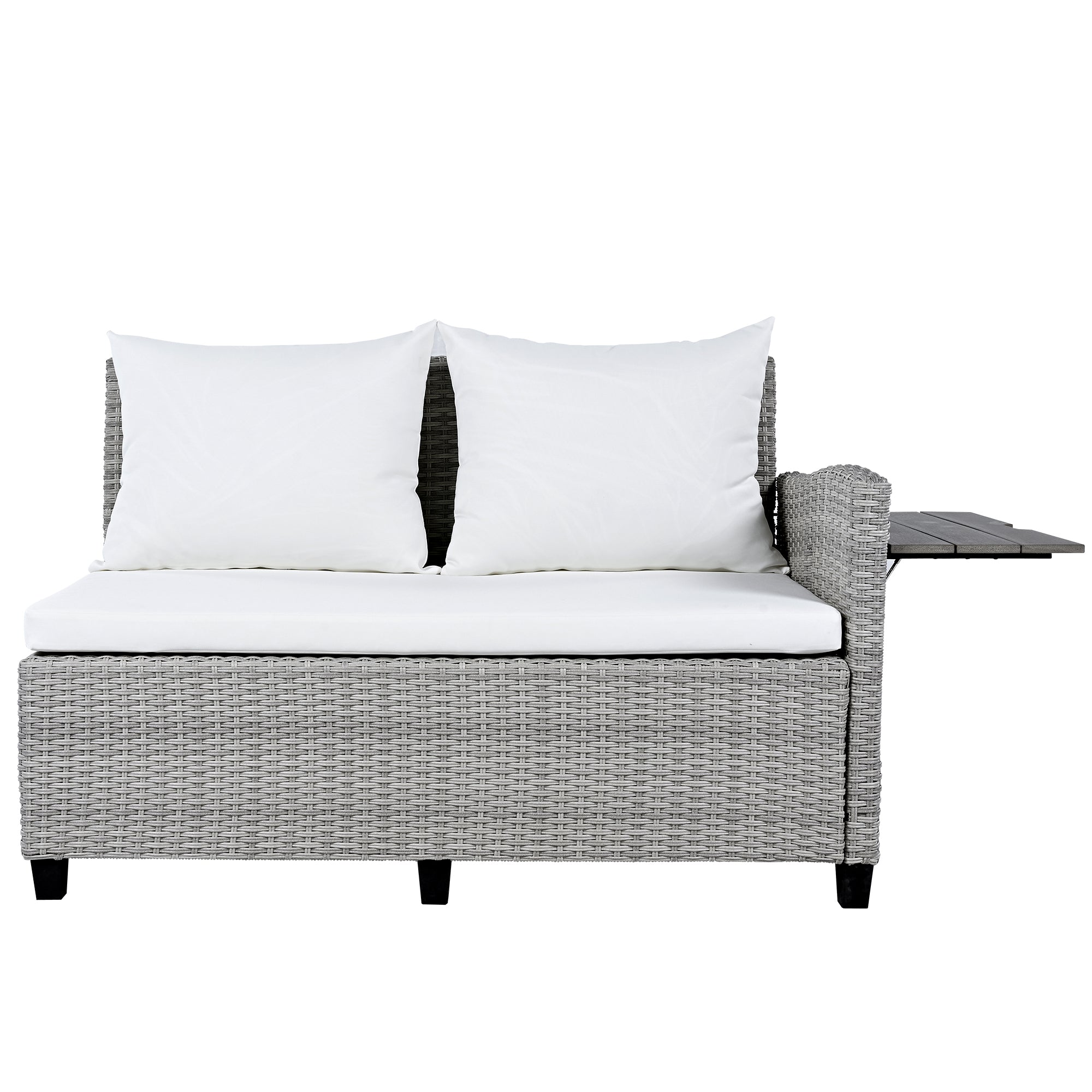 - [Extendable Side Tables] Allowing you to have a cool juice or sweet fruit in handy, there is one side table in each loveseat sectional sofa. Hinged by durable gaslifts, the side table can be open or closed flexibly with well-designed hollows for easily handling.