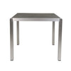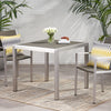 - If time and time again you find yourself with a delicious meal and nowhere to set it down upon when dining outdoors, investing in one of our signature square patio dining tables may be just what the doctor ordered. Its stunning aluminum frame offers a stable and durable structure and is reinforced with a chic, slatted faux wood tabletop for bold and contemporary presence that will make a statement on your porch or patio.