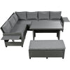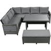 TOMAX 5-Piece Outdoor Patio Rattan Sofa Set, Sectional PE Wicker L-Shaped Garden Furniture Set with 2 Extendable Side Tables, Dining Table and Washable Covers for Backyard, Poolside, Indoor, Gray SP100006AAE-djyc