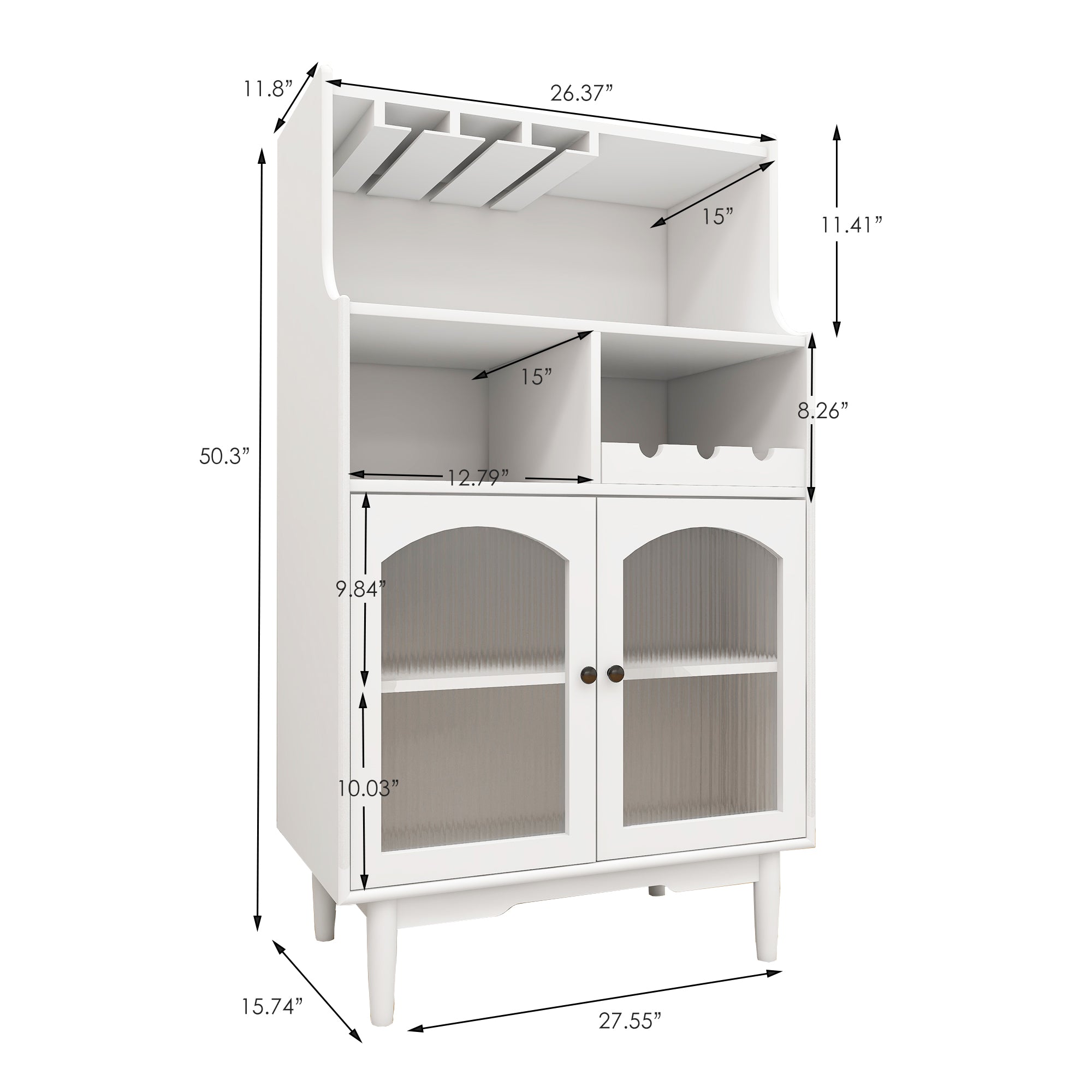 Living room White wine cabinet with removable wine rack and wine glass rack, a glass door cabinet W28265029-djyc