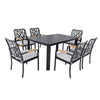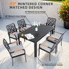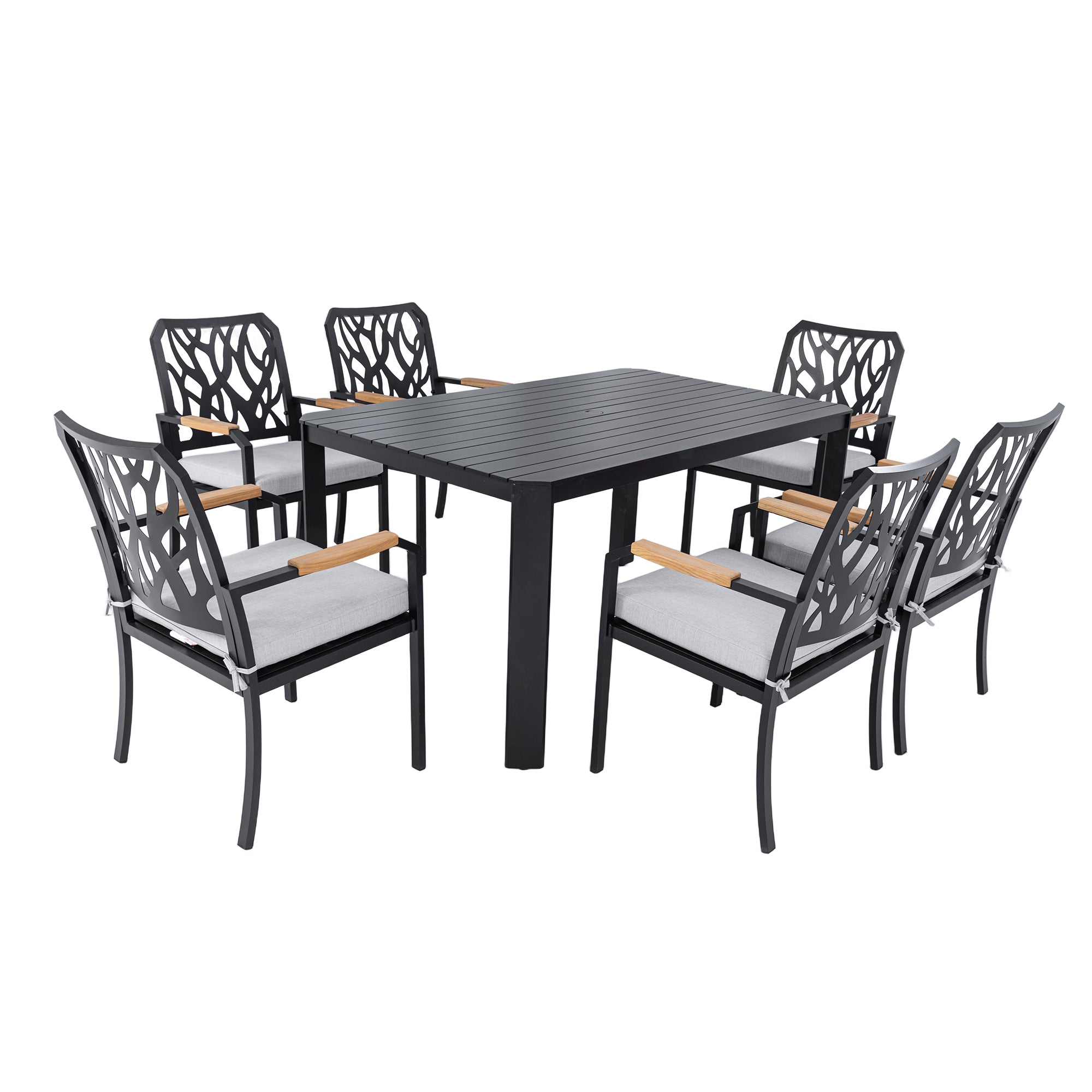- The entire patio furniture set consists of a rectangular table and six dining chairs, with the set's meticulous design making it an ideal choice for outdoor patio leisure.