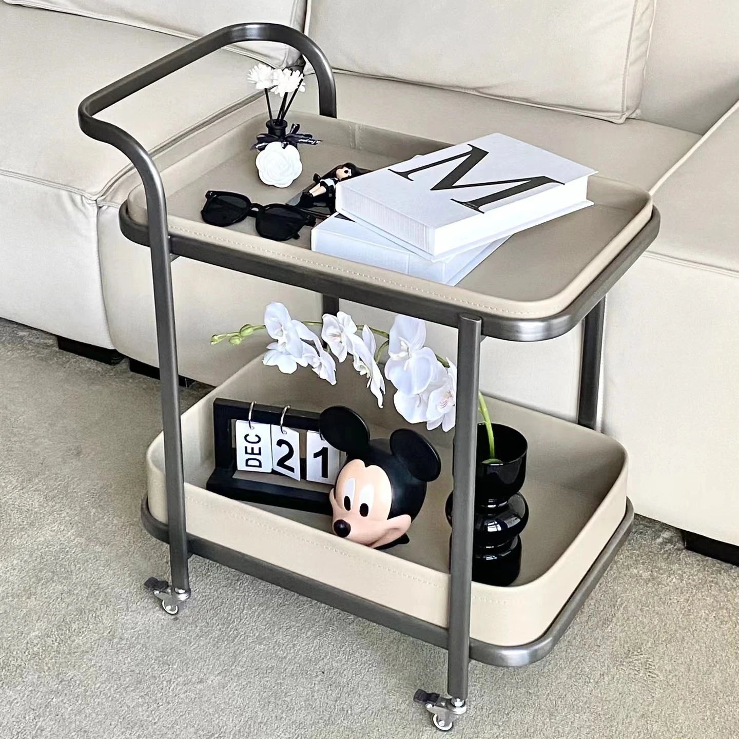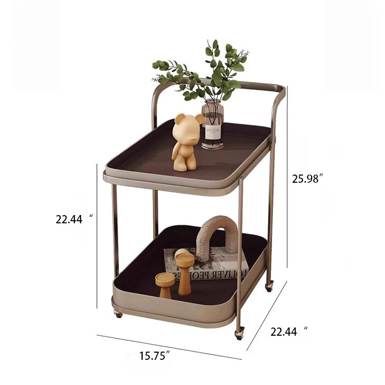 Stylish Stainless Synthetic Leather Tea Table with Wheels – Elegant Multi-Level Serving Cart for Modern Living Spaces hqy-5201