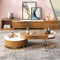 Stylish Brown Natural Wood Coffee Table with Glass Top fjnl-1592