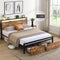 Full Bed Frame with USB Charging Station & LED Lights, Full Bed Frame with Headboard & 4 Storage Drawers, D W1960P175564-djyc