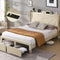 Full Size Bed Frame with 2 Storage Drawers, Upholstered Bed Frame with Wingback Headboard Storage Shelf Built-in USB Charging Stations and Strong Wood Slats Support, No Box Spring Needed, Beige W1916126256-djyc