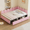 Full Size Upholstered Daybed with 2 Drawers,Velvet Sofabed with Soft Fabric Headboard, No Box-spring Needed, Pink N733P194901H-djyc