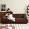 Luxurious Orange Genuine & Faux Leather Sofa with Plush Down Comfort Hersa-1648