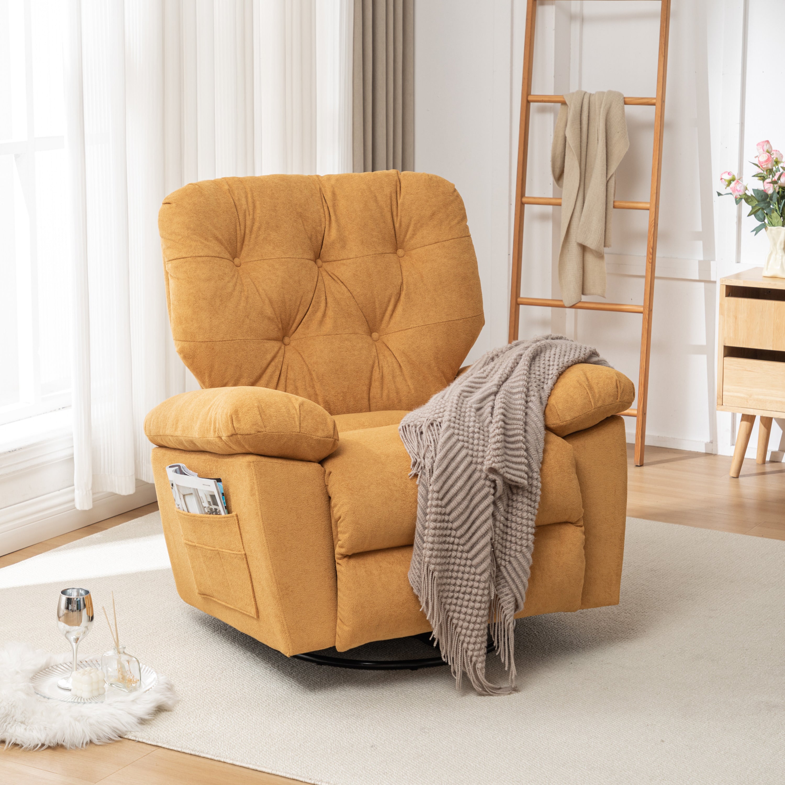 Yellow Relaxing Recliner Chair,Soft Artificial Fleece, Overstuffed, Swivel, Glider, Side Pocket W1170S00034-djyc