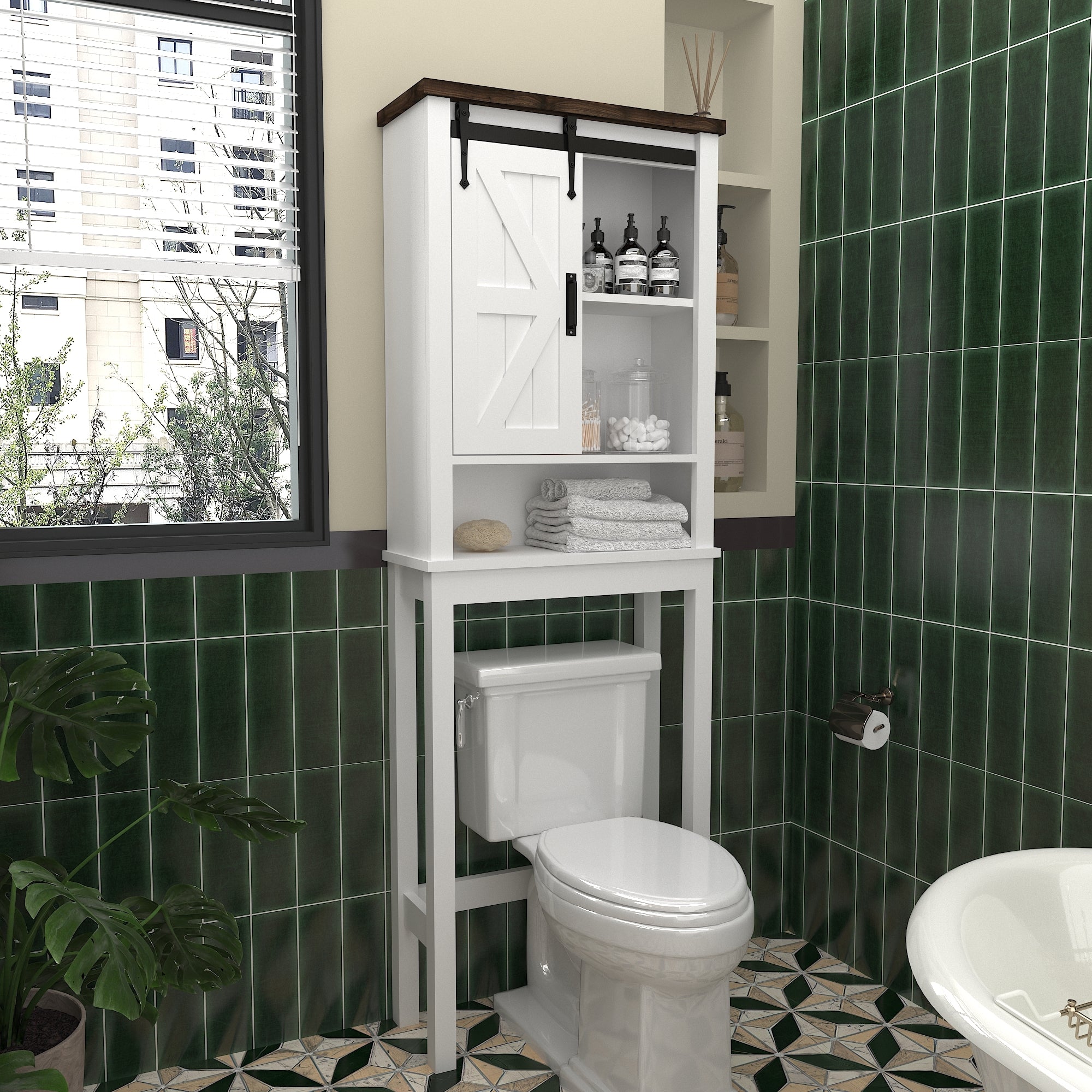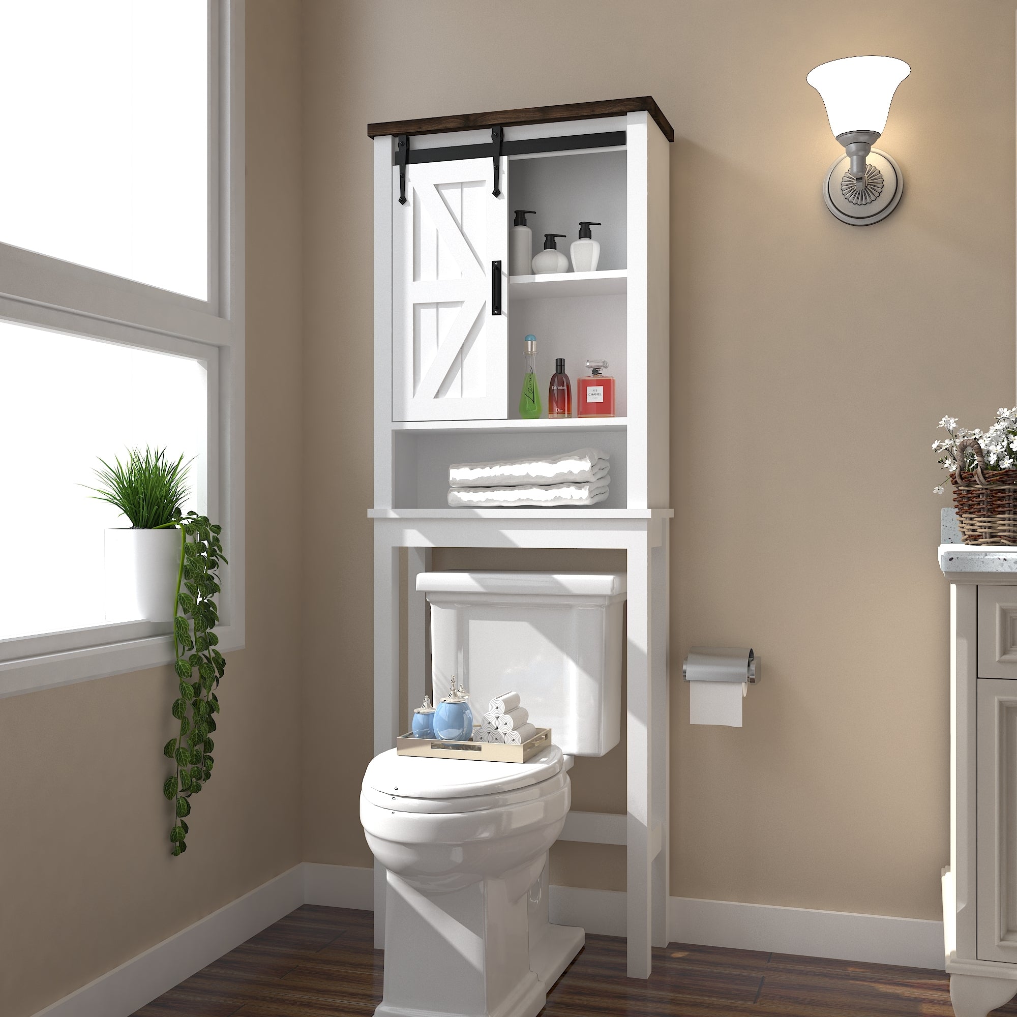 Over The Toilet Storage Cabinet, Farmhouse Above Toilet Storage Cabinet with Adjustable Shelves & Sliding Barn Doors, Organizers Over Toilet for Bathroom, Living Room, White W1347P183703-djyc