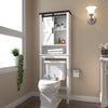- This toilet cabinet can be placed over the toilet, which has a good usage of the vertical space and is much space-saving solution for small bathrooms. Open and semi-enclosed cabinets provide plenty of space to store bath essentials like toilet paper, wash clothes and more, keeping your bathroom organized while without taking up too much floor space. Overall dimension: 23.62" L ×9.84" W × 67.72" H.