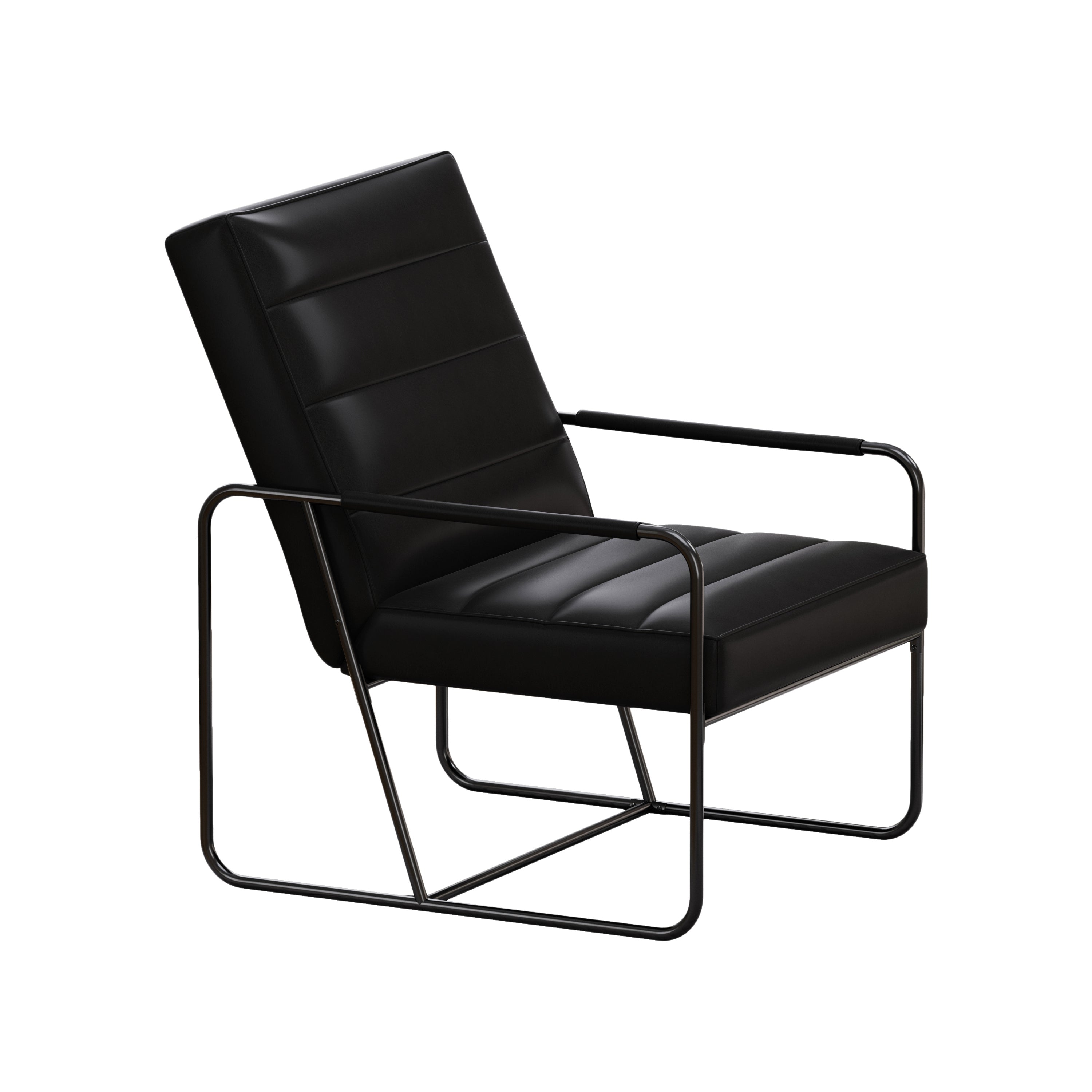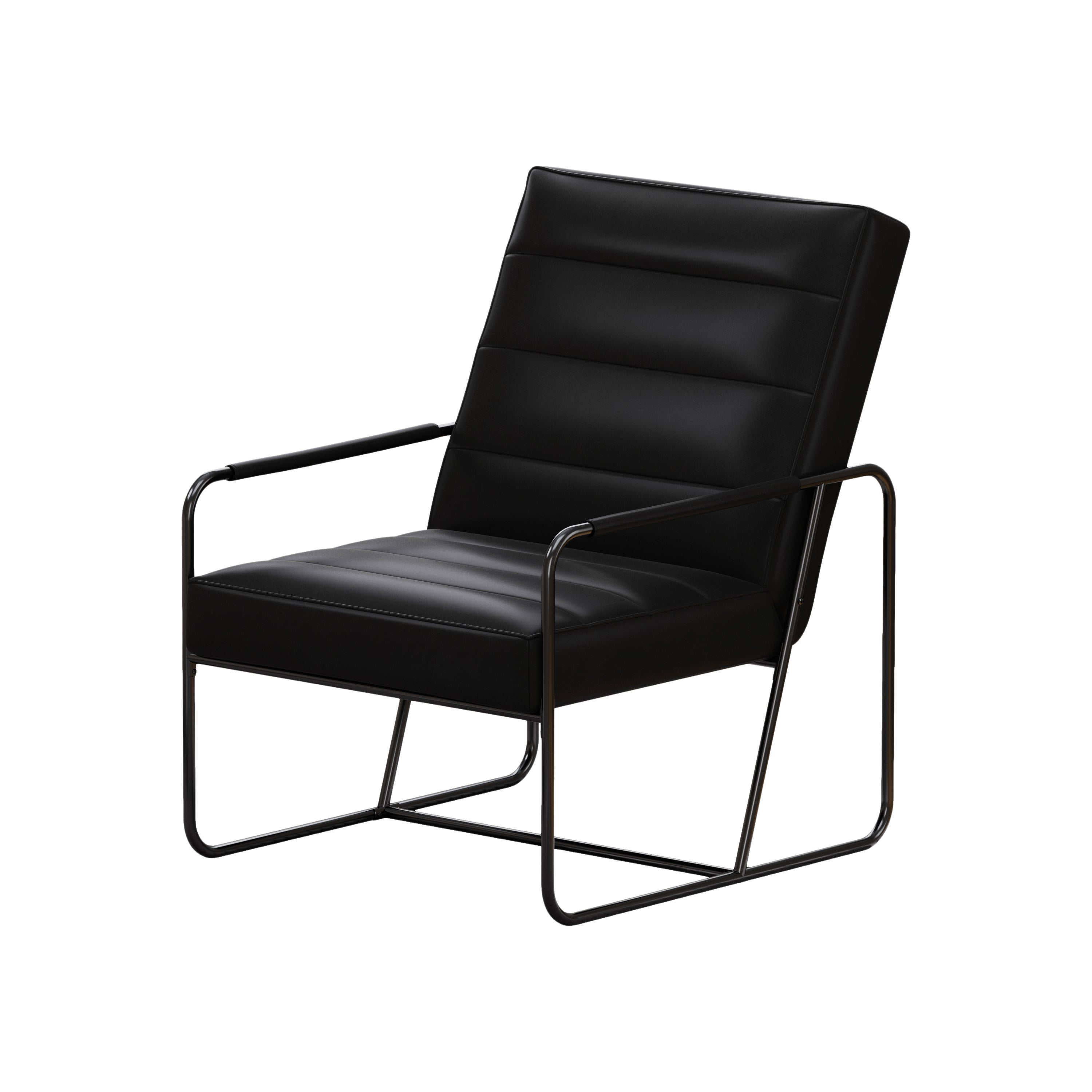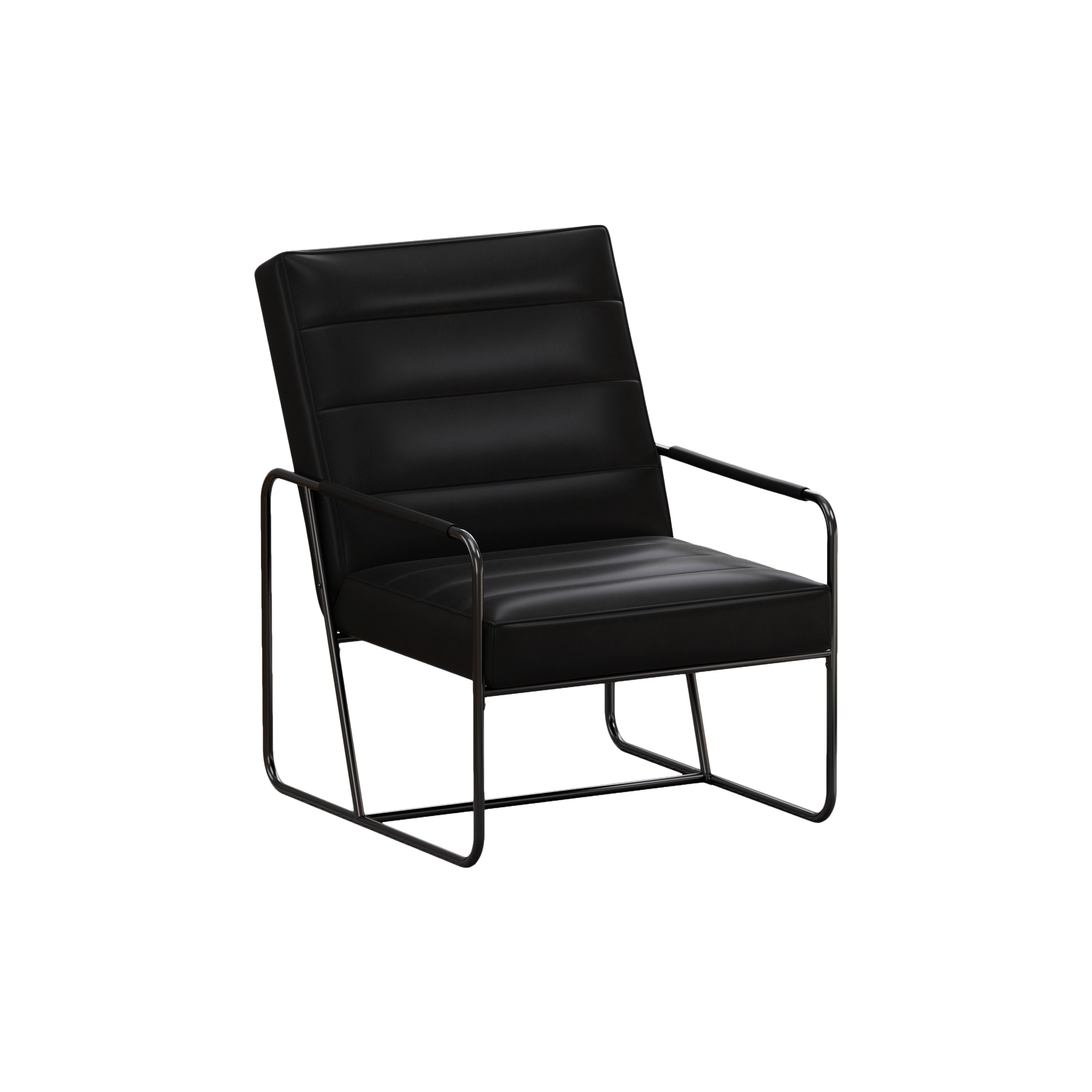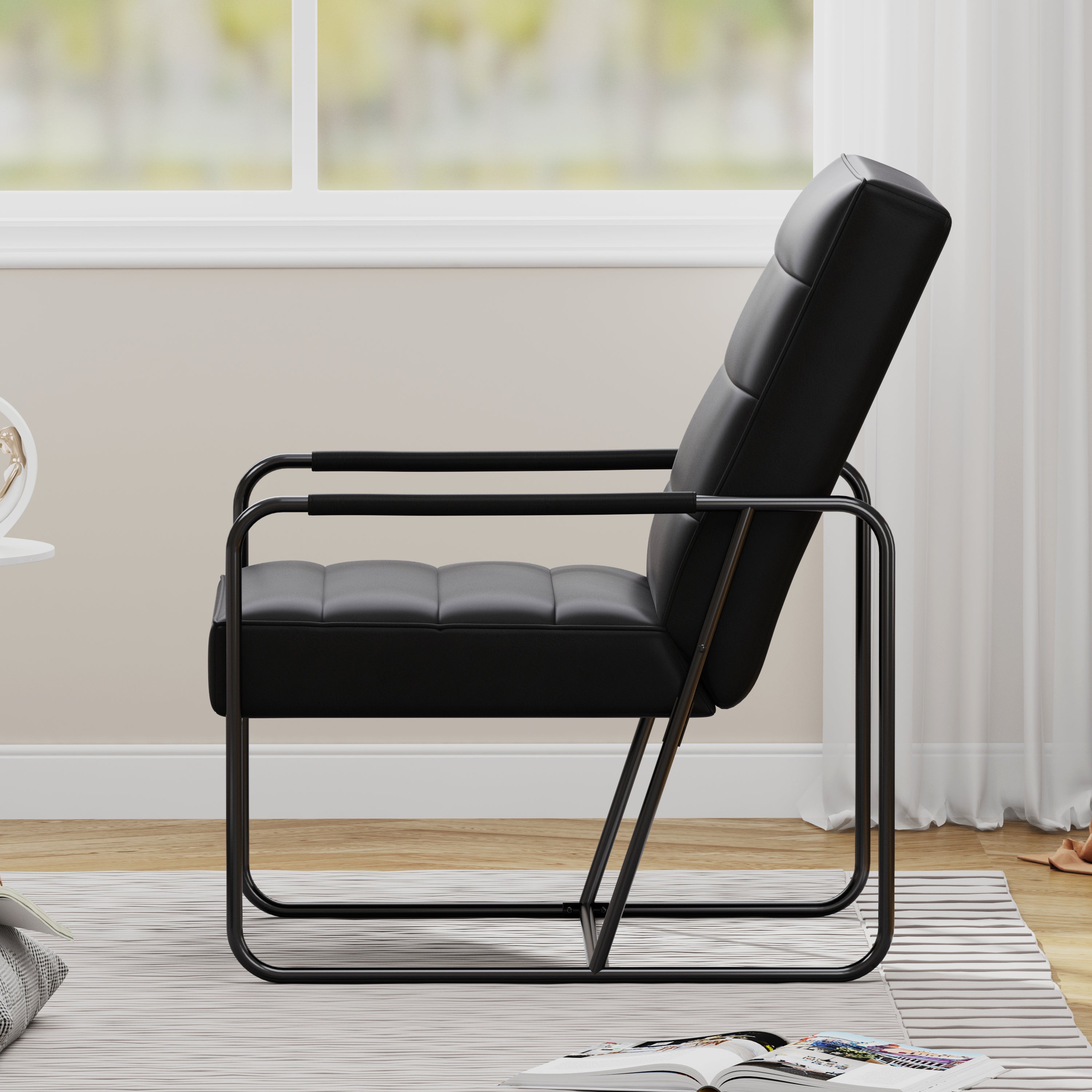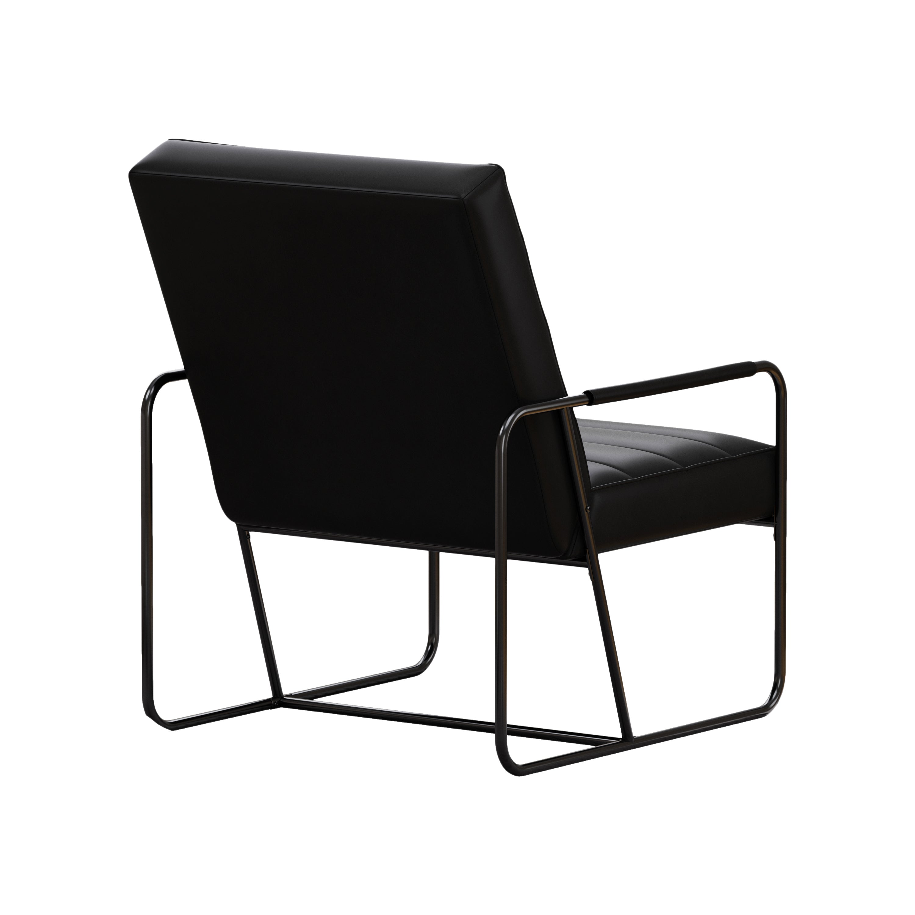 Modern Metal Framed Armchair with Black Technical Leather, Stylish & Comfortable Indoor Lounge Accent Chair for Living Room, Office,Bedroom W1669P197980-djyc