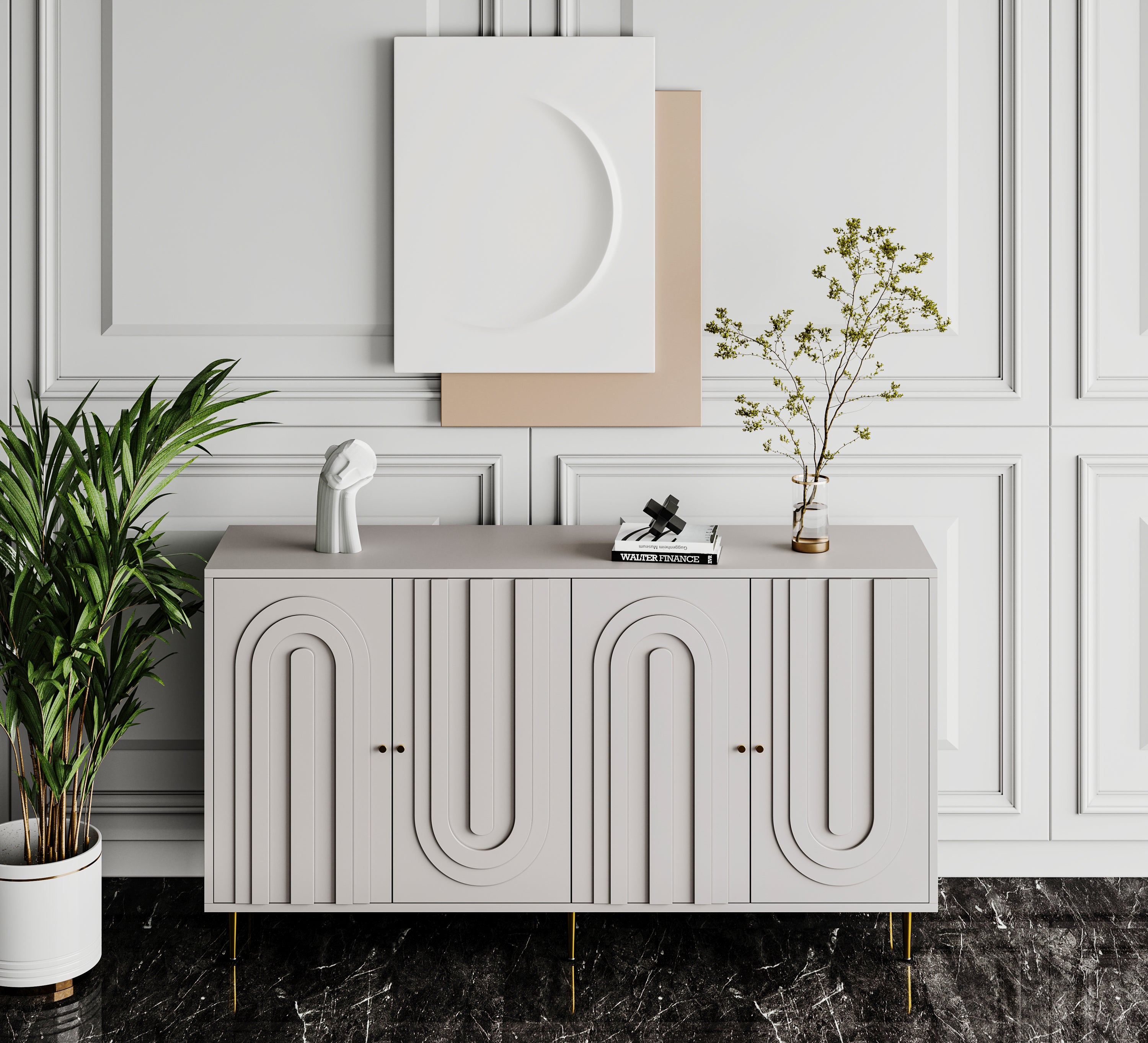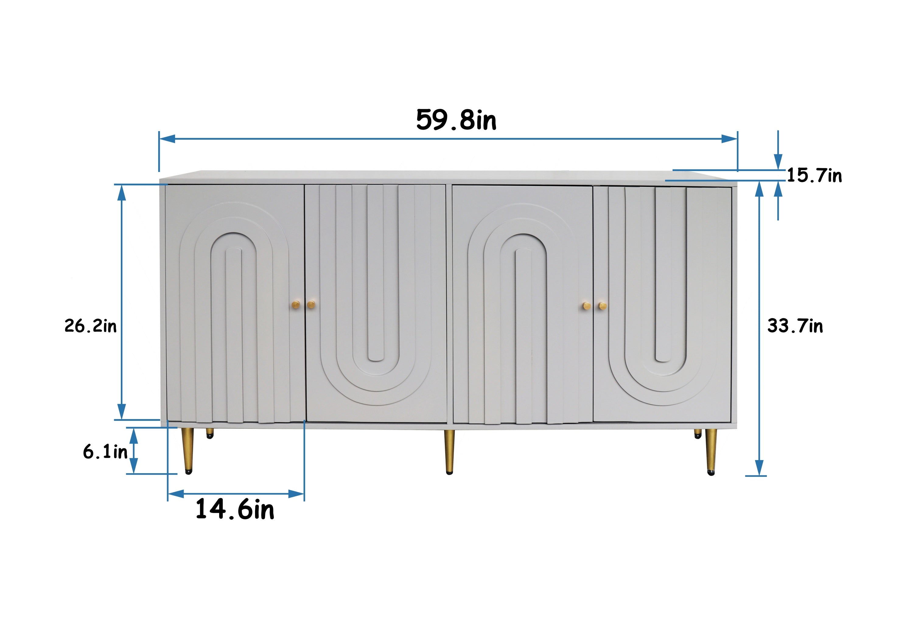 Modern Gray Lacquered 4 Door Wooden Cabinet Sideboard Buffet Server Cabinet Storage Cabinet, for Living Room, Entryway, Hallway, Office, Kitchen and Dining Room W1435133312-djyc