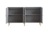 - Featuring matte gray lacquered finish matching with shining golden door knobs and legs, this cabinet will add a stunning look to your places.