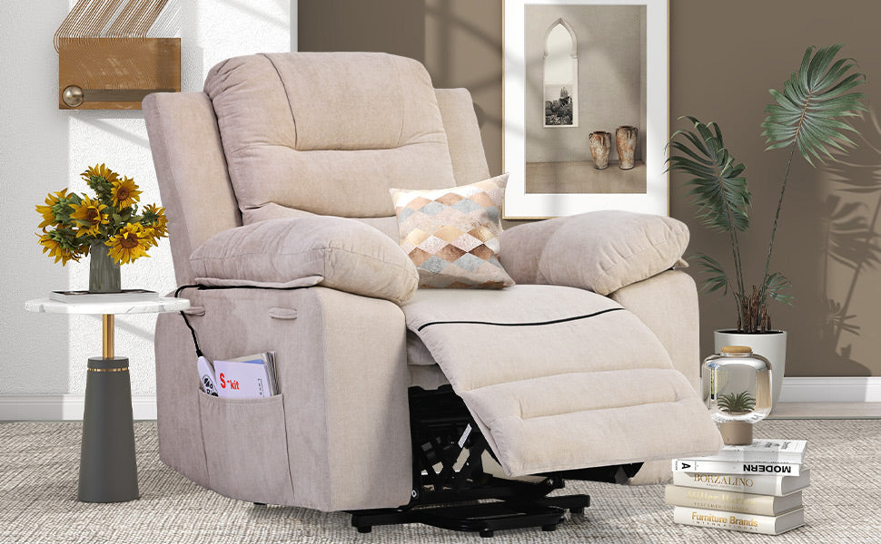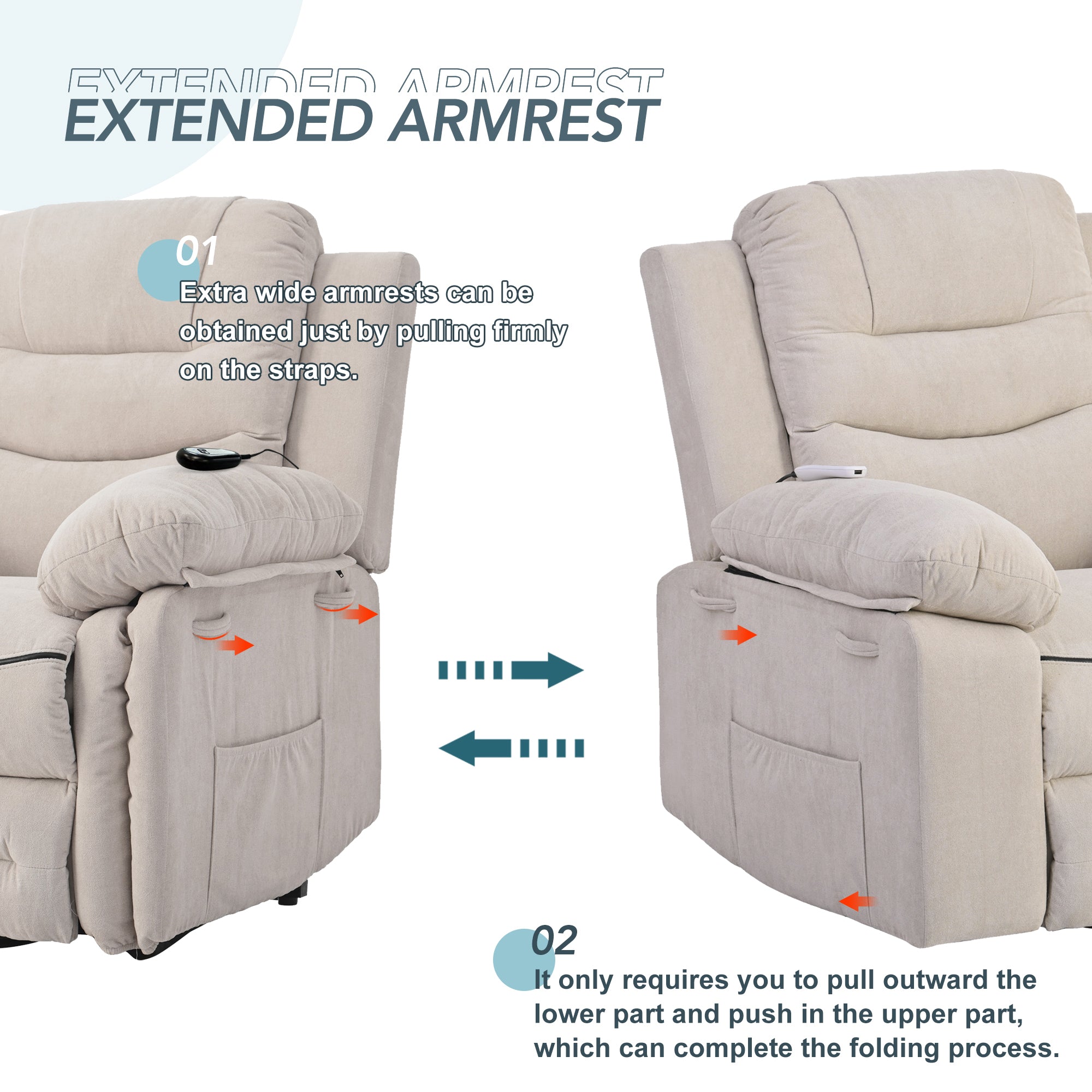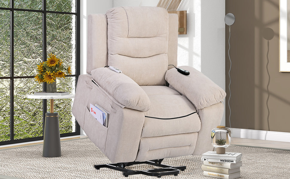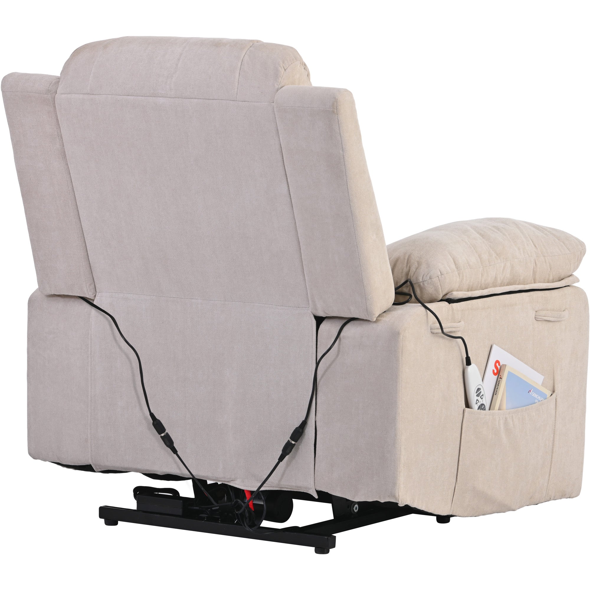 Massage Recliner,Power Lift Chair for Elderly with Adjustable Massage and Heating Function,Recliner Chair with Infinite Position and Side Pocket for Living Room ,Beige N719P187474A-djyc