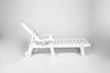 - This chaise lounge is made of high-density polyethylene. This tough HDPE material is much more ideal for outdoor use than normal wood. It can withstand long-time exposure in sunlight and rain and won't easily fade. Moreover, the HDPE material is also skin-friendly and simple to maintain.