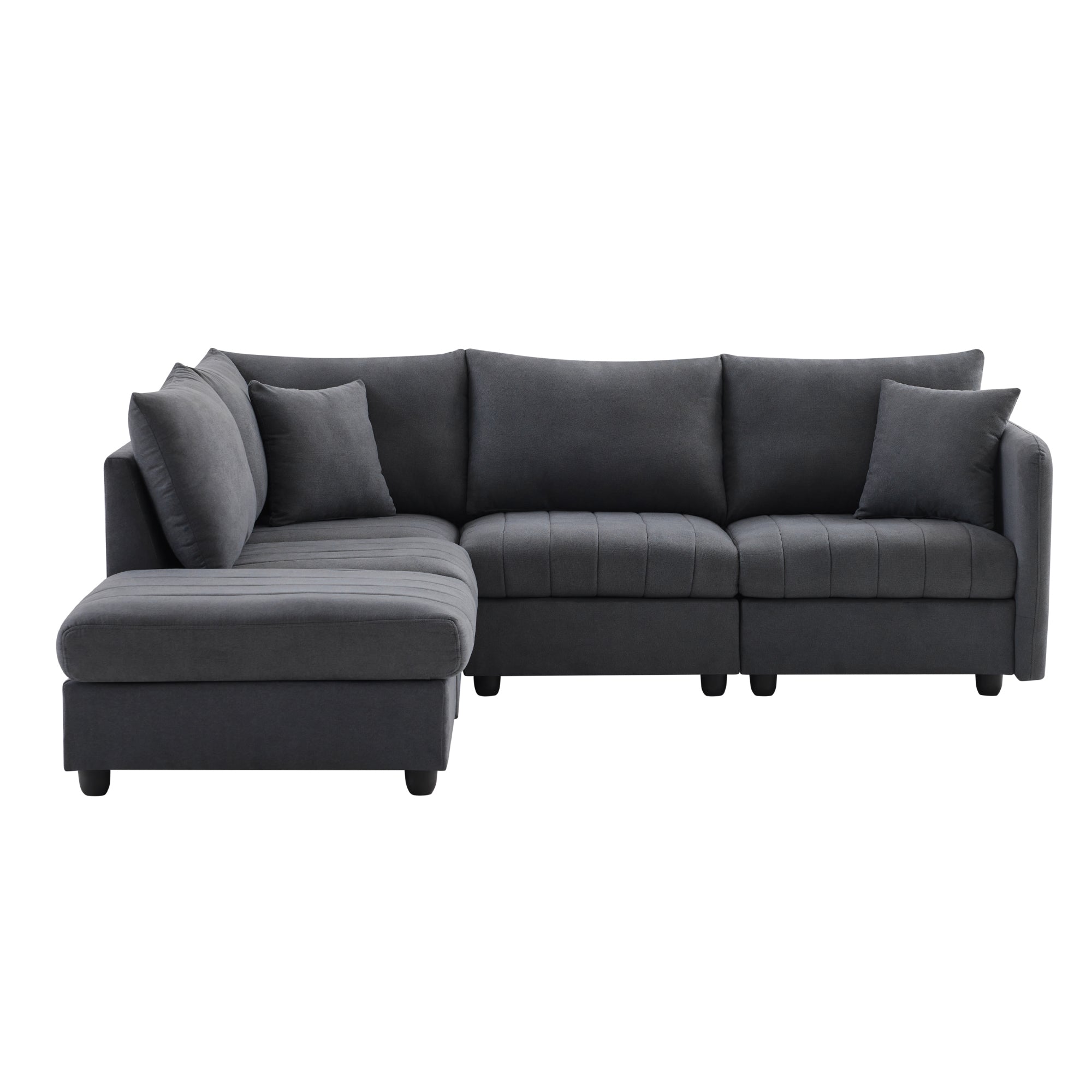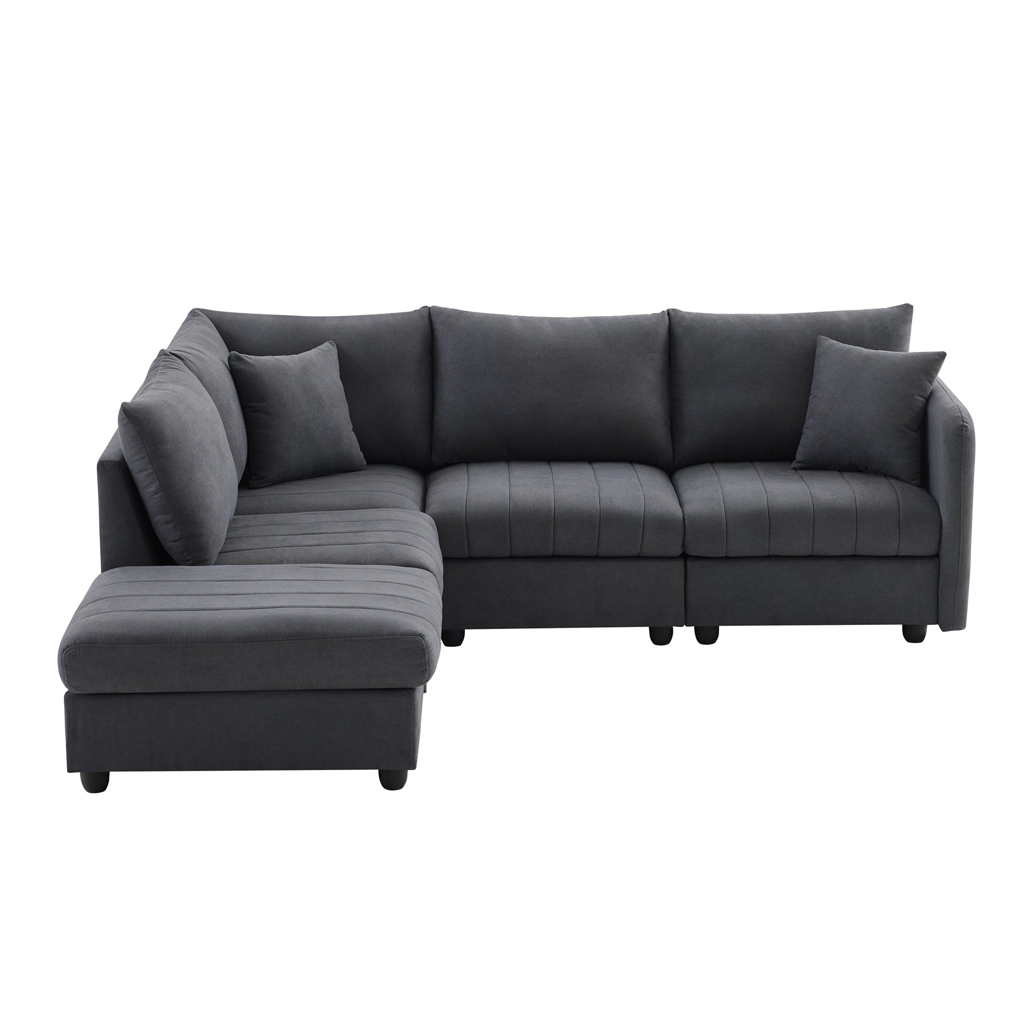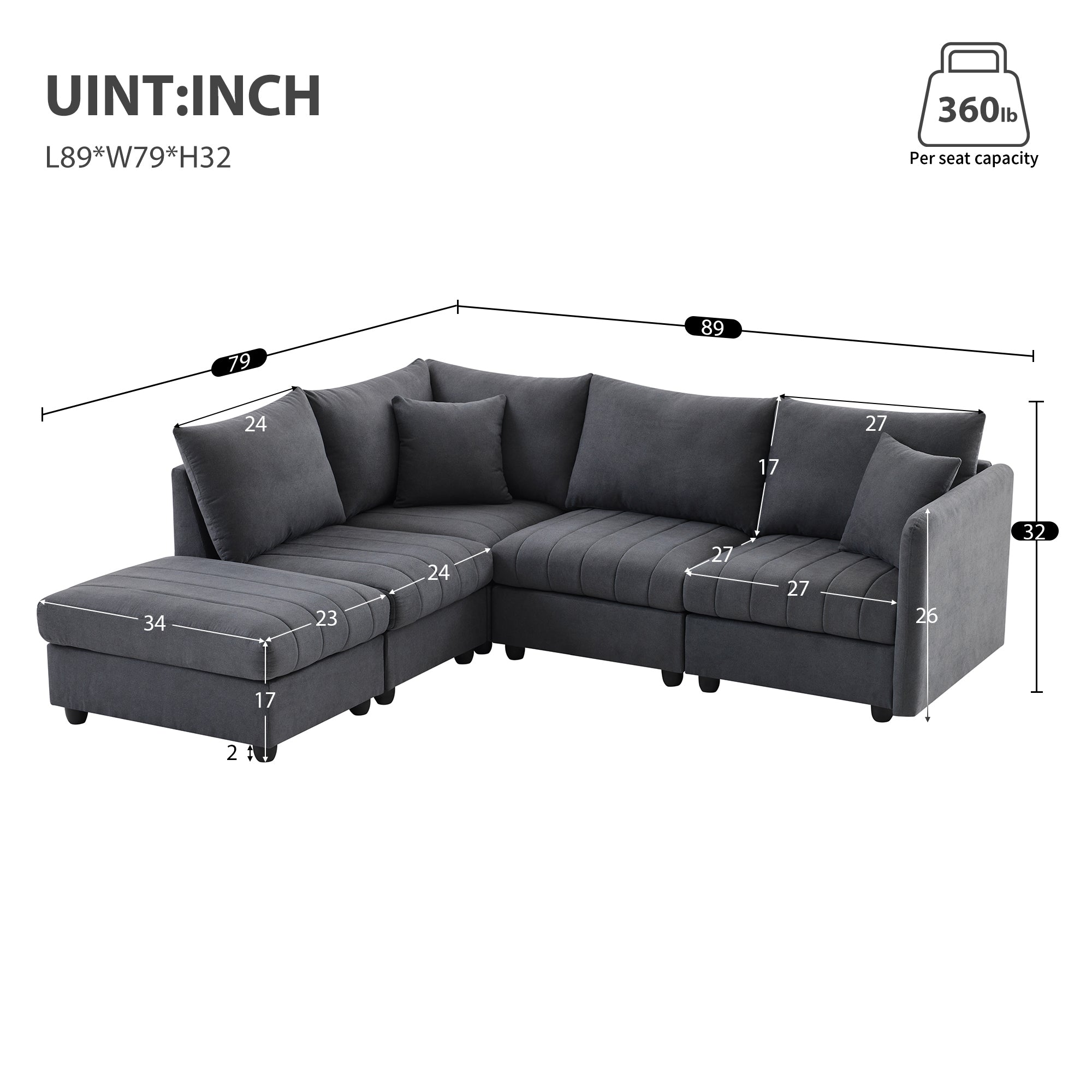 89*79' Modern Modular Sectional Sofa with Deep Seat,Vertical Stripes,5 Seat Corner Couch with Movable Ottoman,Throw Pillows,L-Shaped Comfy Cloud Indoor Furniture for Living Room,Apartment,3 Colors N723S7033E-djyc