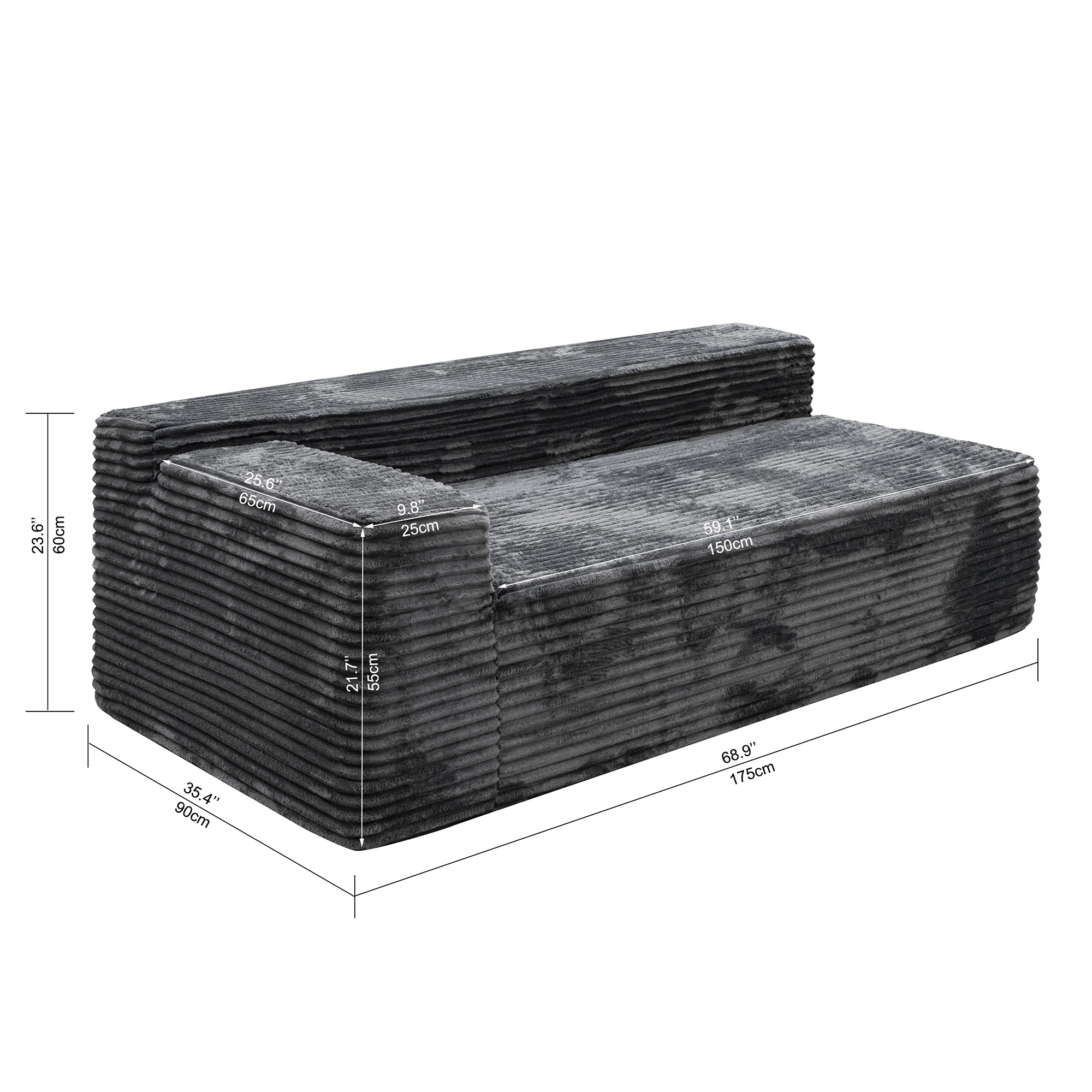Modular Sectional Sofa Plush Corduroy Fabric Comfortable Chaise Lounge Couch SP-009A-GREY-2L-W3819P448423