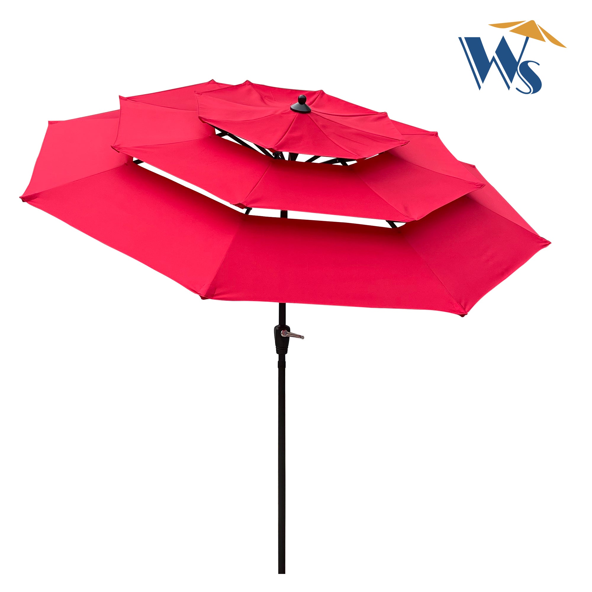 - Finished with a crank lift, 3 tiers patio umbrella can be easy to open and close by crank, making it the ideal go-to item when the sun comes out to shine. The push-button tilt technology also makes tilting the patio umbrella effortless for maximum shade. So It is ideal for you to shade and rain protection(base is not included).