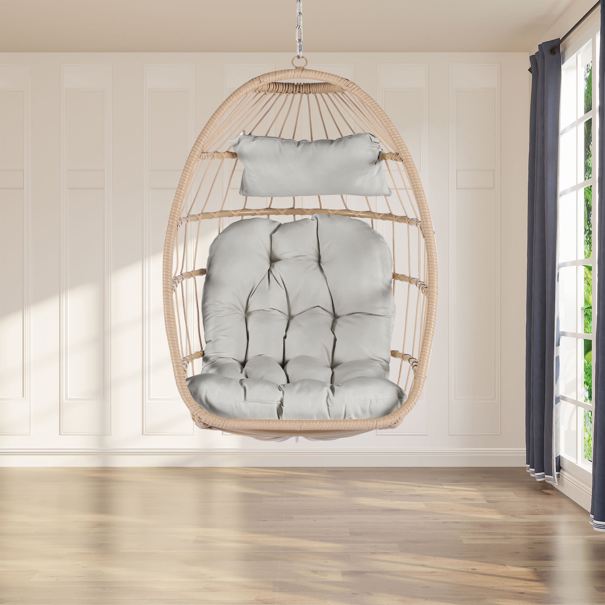 Outdoor Garden Rattan Egg Swing Chair Hanging Chair Wood+Light Gray W87470716-djyc