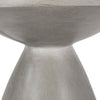 This side table features an hourglass pedestal structure crafted from lightweight concrete. The product is hollow and weighs about 21 pounds, so it doesn't take up a lot of space and can be easily moved.