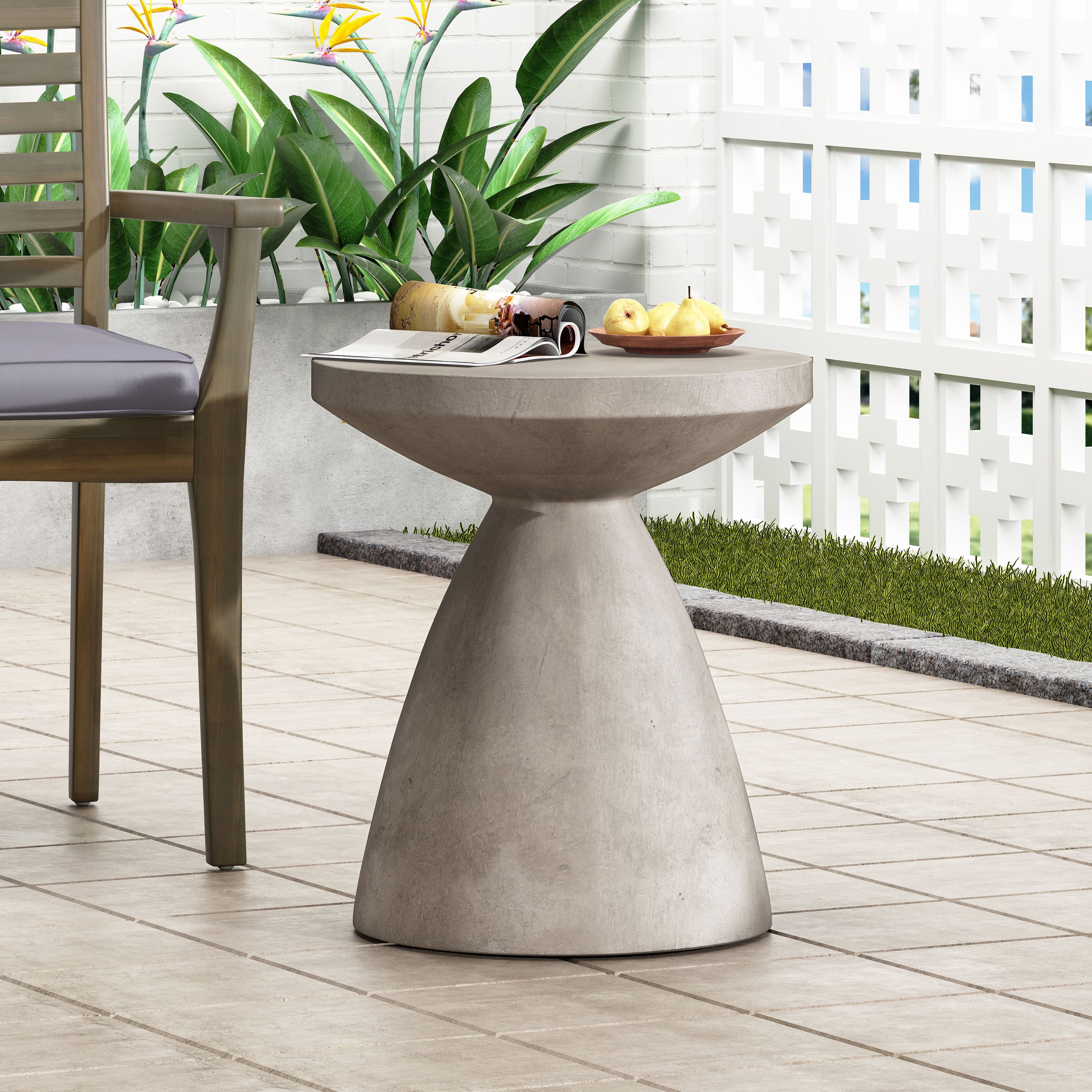 • A TOUCH OF PERSONALITY: Bring your outdoor space to life with our end table that features a beautiful hourglass pedestal structure. With charming aesthetics, this side table will be sure to enliven any home.