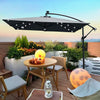 - The patio umbrella has 32 solar-powered LED lights( 4 long ribs with 20,4 short ribs with 12) that will light up your terrace when night falls. Soft lighting creates a romantic atmosphere for you. All LED bulbs are powered by solar panels at the top to save energy while maintaining perfect lighting.